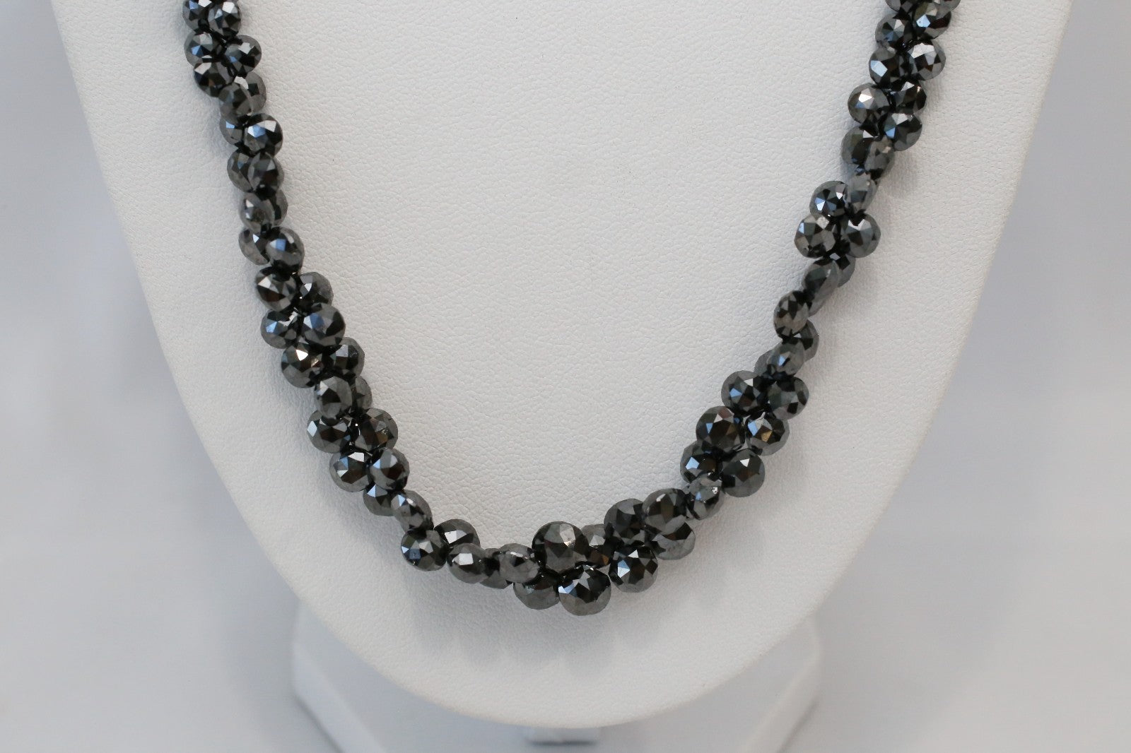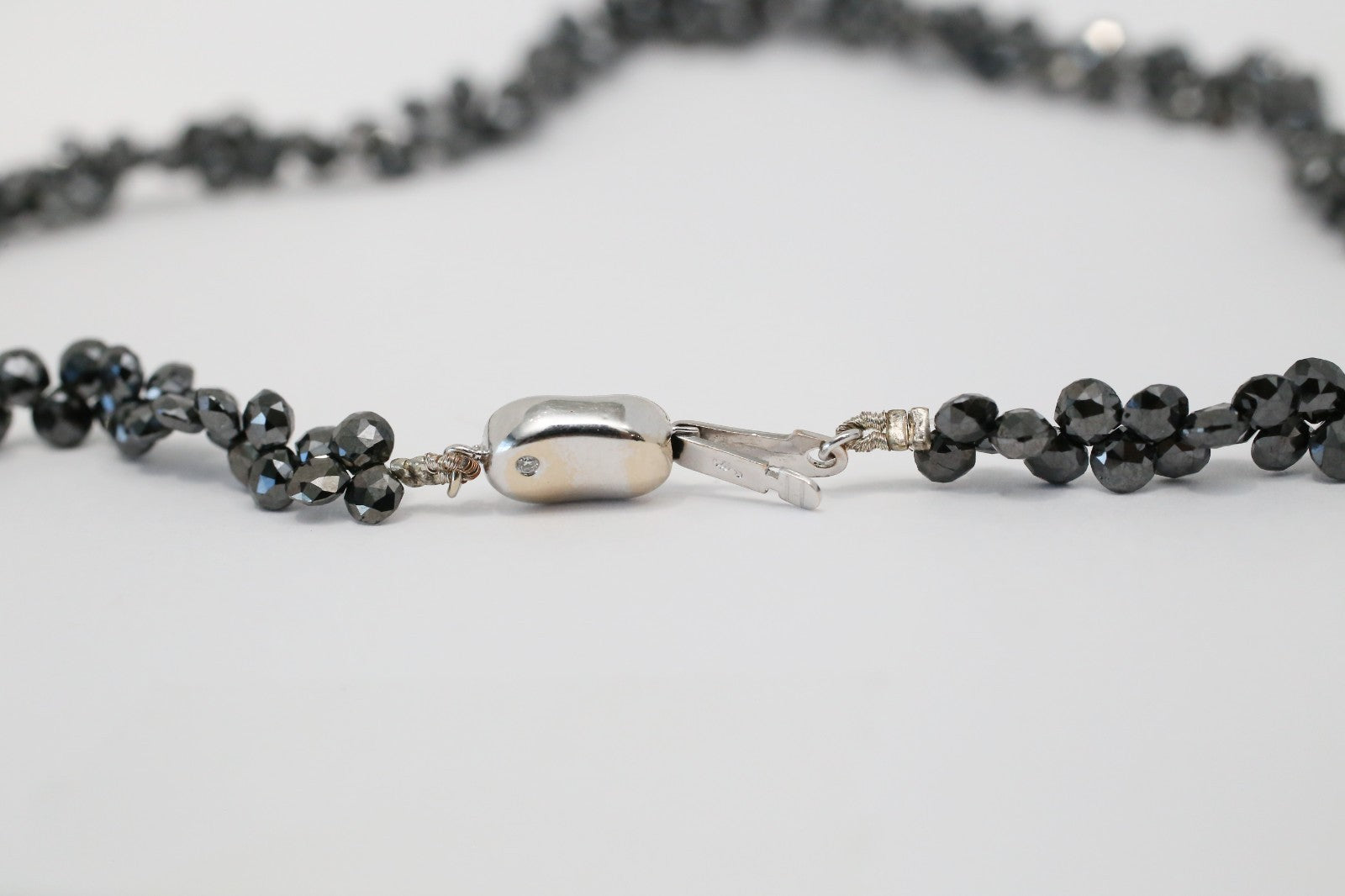 18k White Gold Black Hematite Cluster Necklace, 19 inches - 28.4g