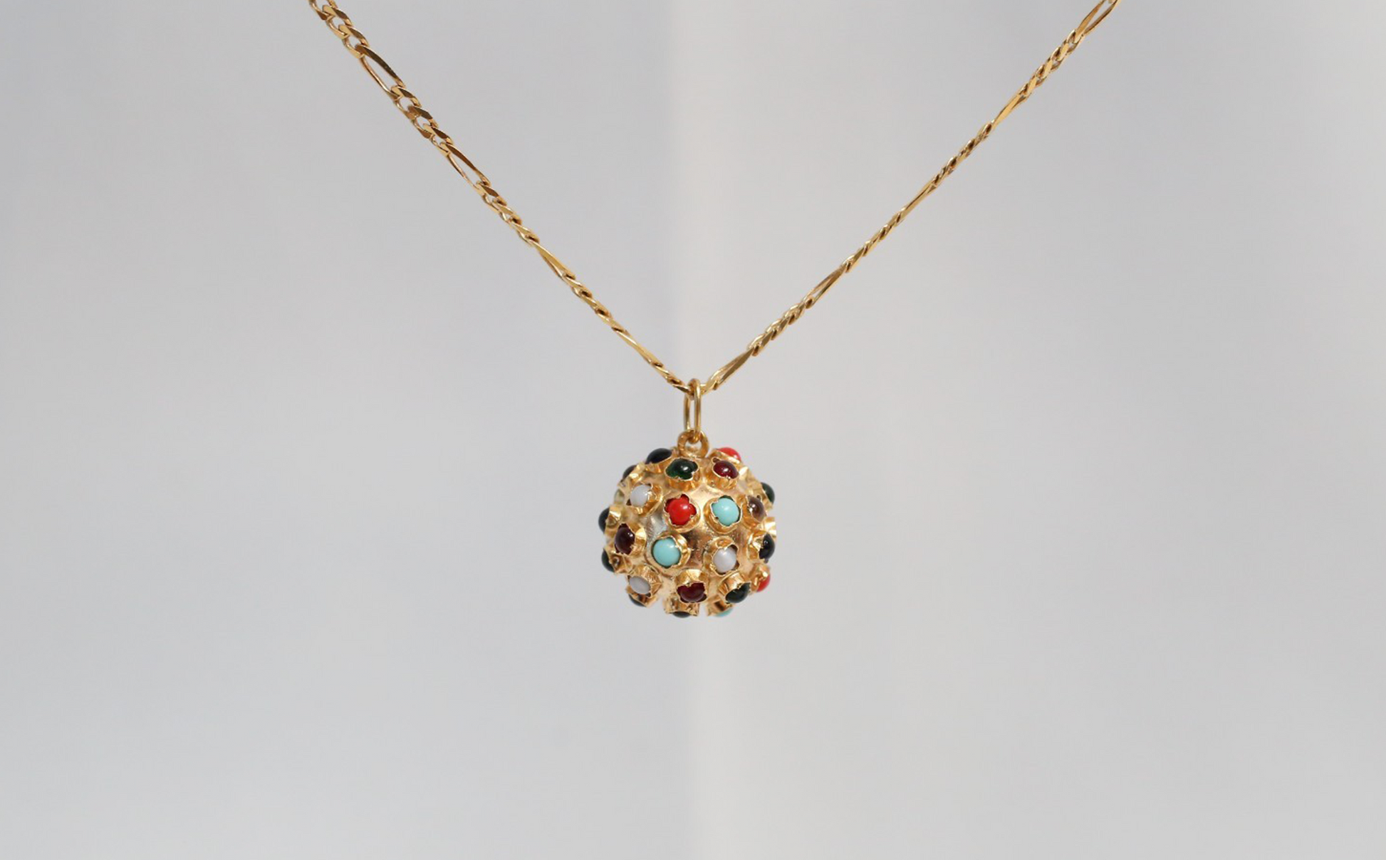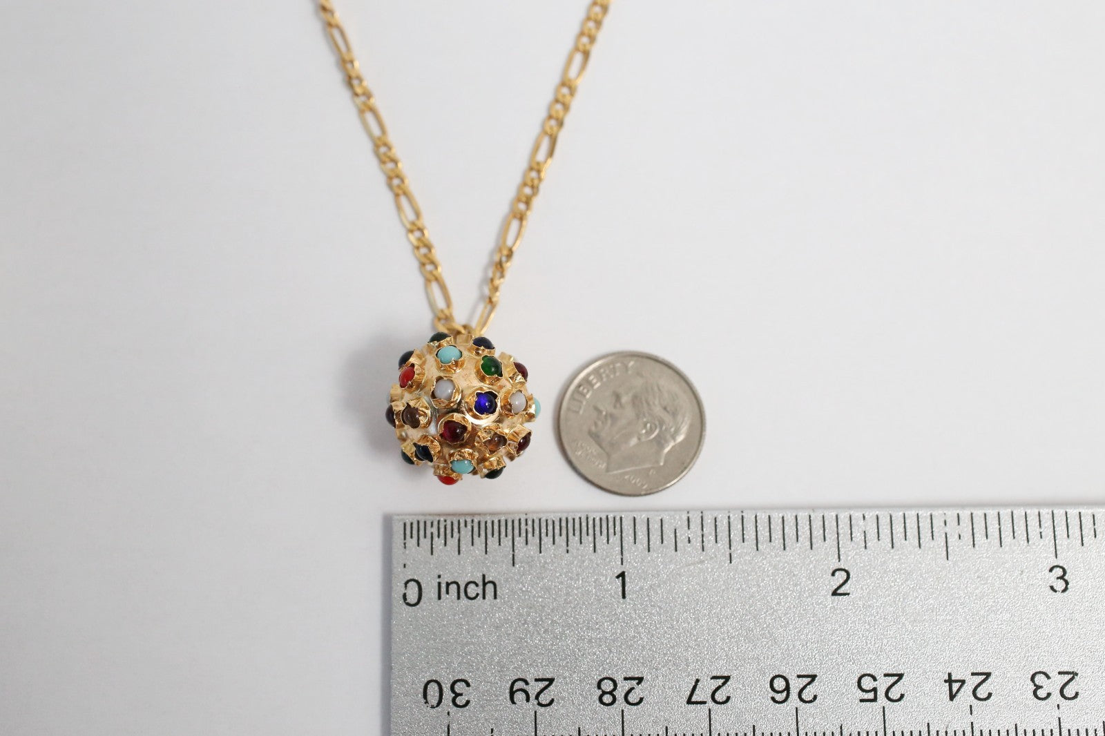 This 19K Portuguese Gold Multi Stone pendant features a beautiful array of multicolor gemstones. The yellow gold metal purity of 19k adds a touch of luxury to this fine jewelry piece. Making it a unique and eye-catching accessory for any occasion.