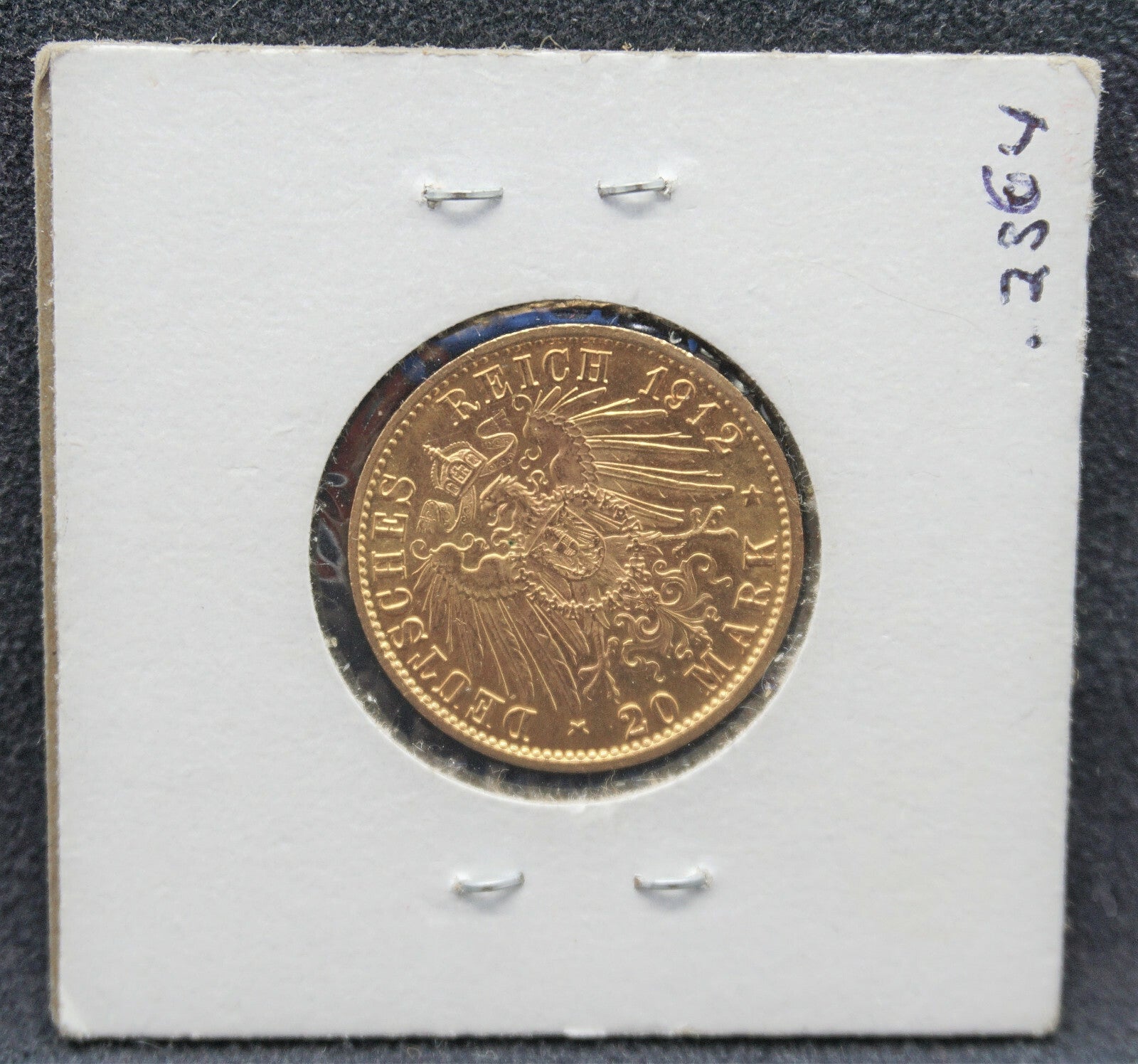1912 Germany PRUSSIA 20 Mark Gold Coin Wilhelm II