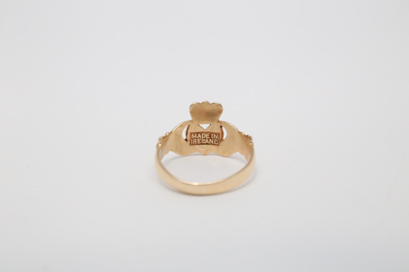 9k Yellow Gold Claddagh Ring, Size 12 - 5.1g