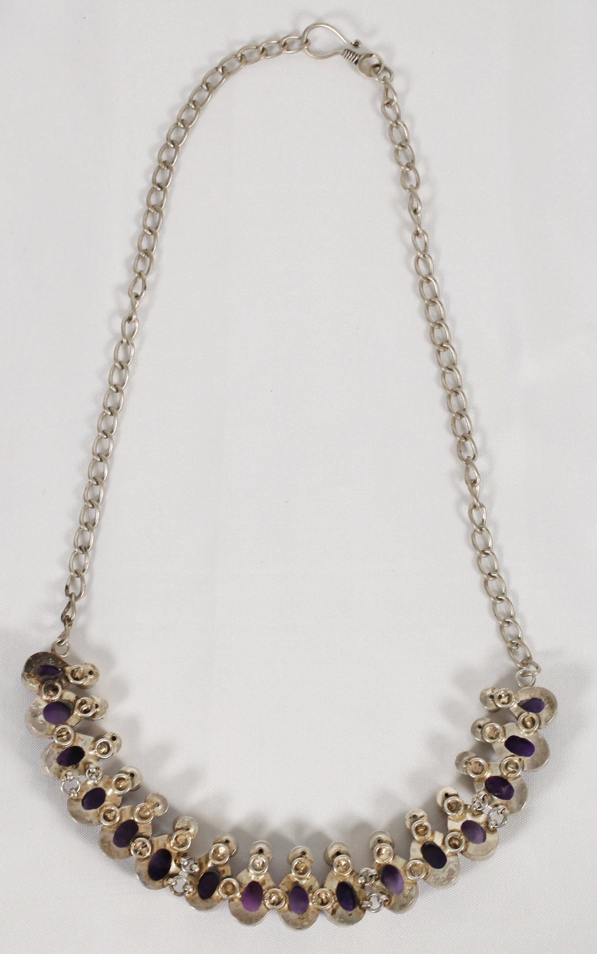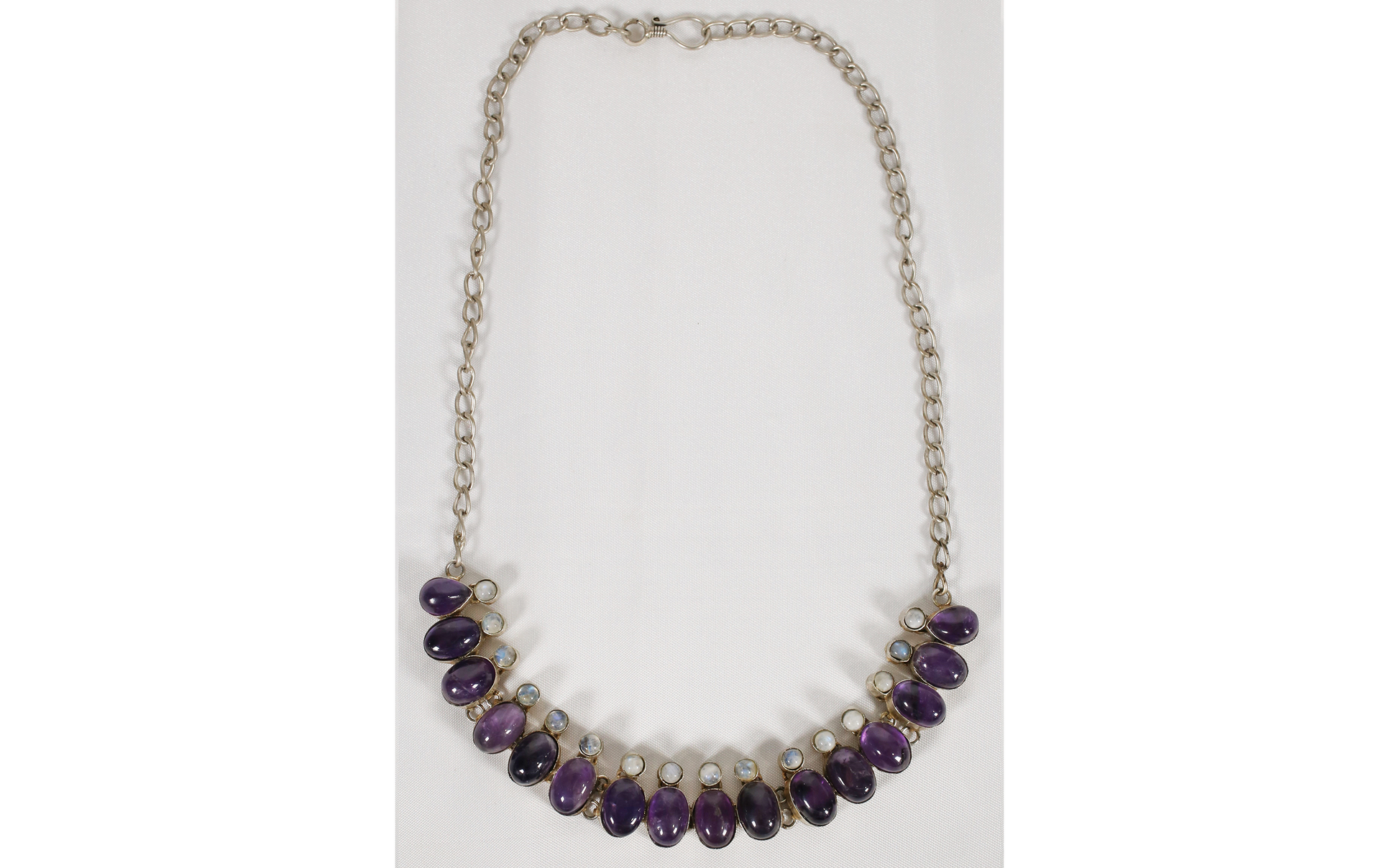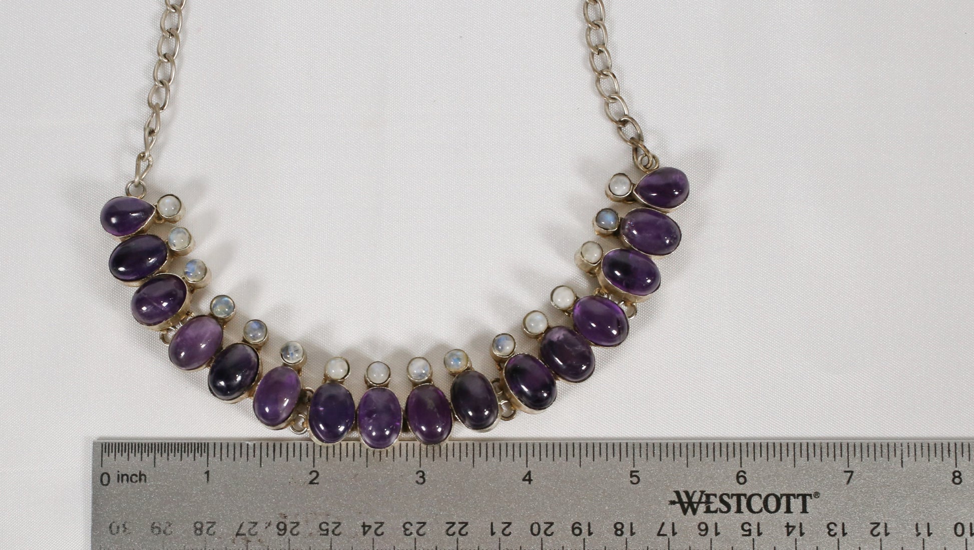 Antique Sterling Silver Amethyst & Moonstone Necklace, 22" (adjustable) - 79.4g