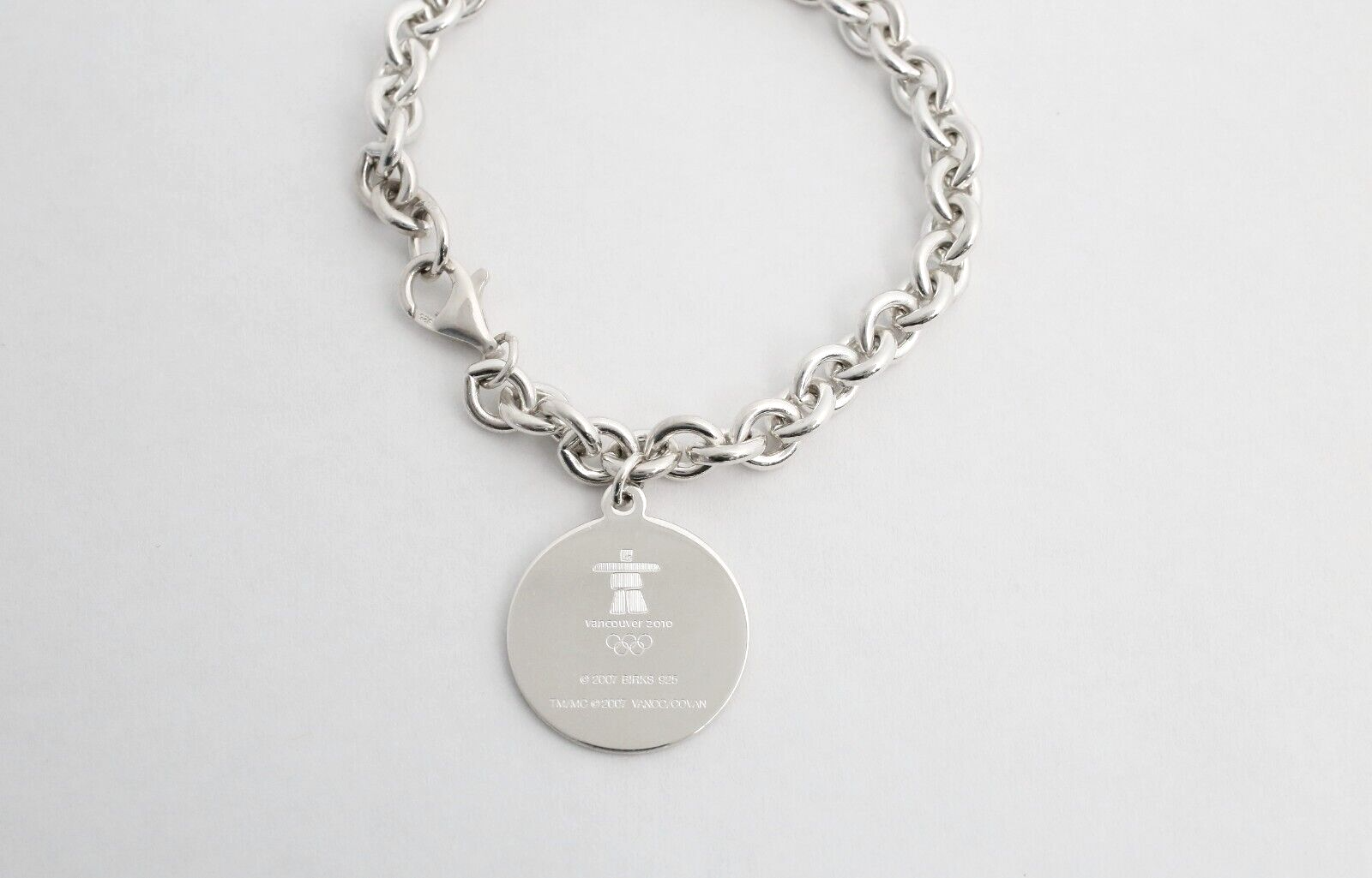 This Birks bracelet boasts a beautiful round charm from the Vancouver 2010 Winter Olympics. Made in Canada, this bracelt is crafted with high-quality sterling silver. You will receive the exact bracelet in the pictures.