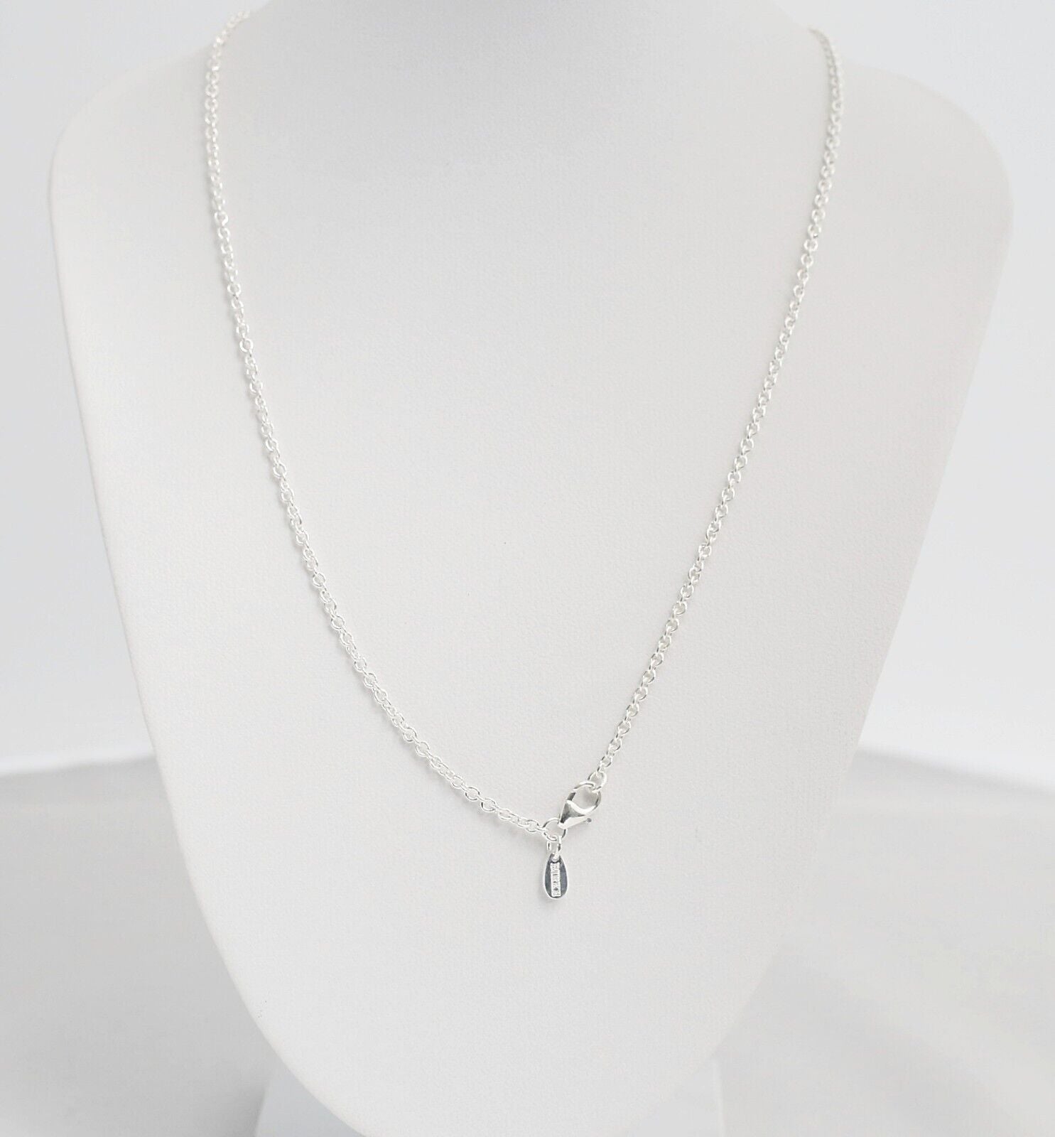 This Birks necklace boasts a beautiful 18.0" sterling silver chain. The closure ensures a secure fit while the small heart pendant adds a touch of elegance to the piece. Made in Canada, this necklace is crafted with high-quality sterling silver.