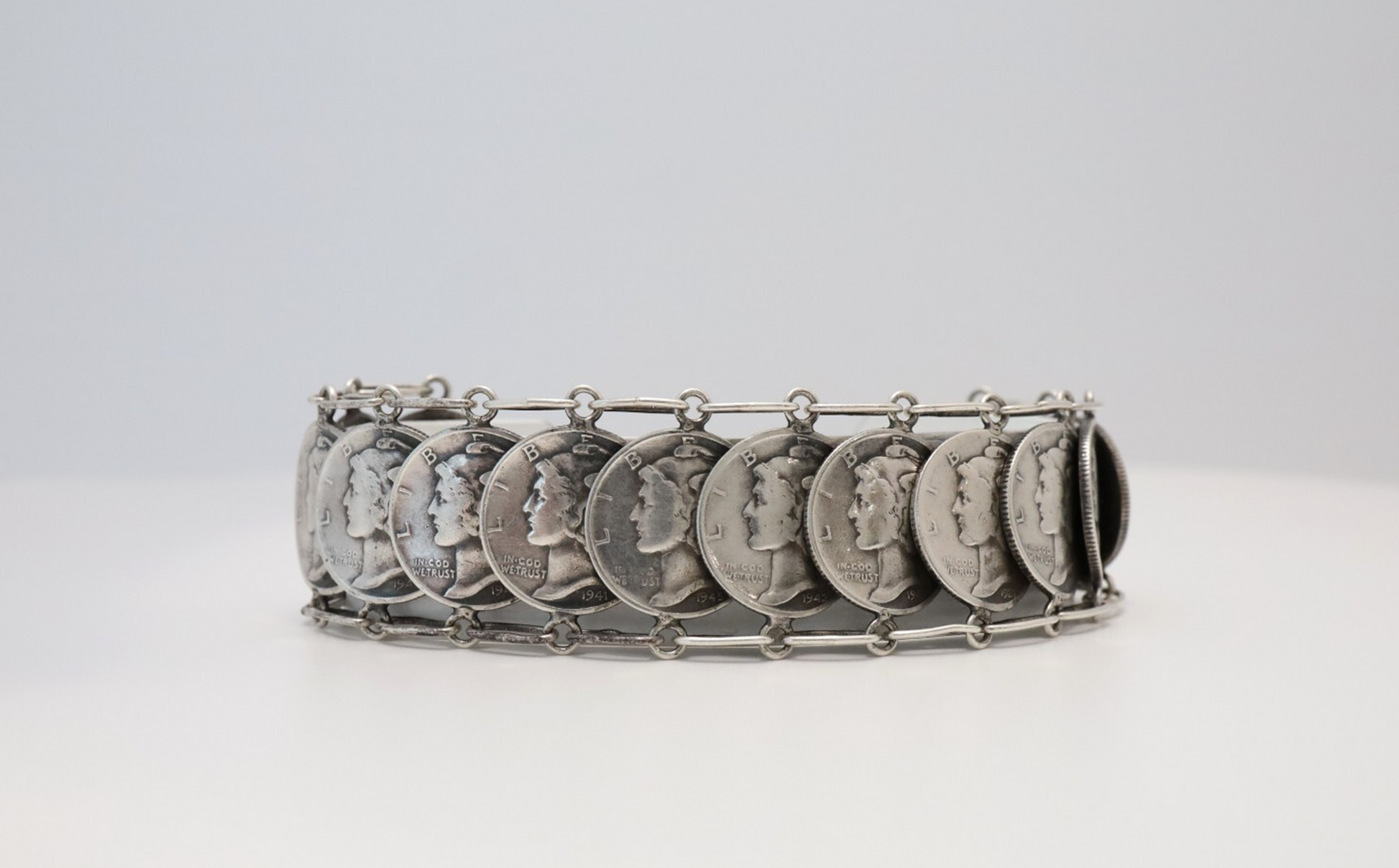 James McCabe Sterling Mercury Dime Bracelet, 7-8inches - 43.0g