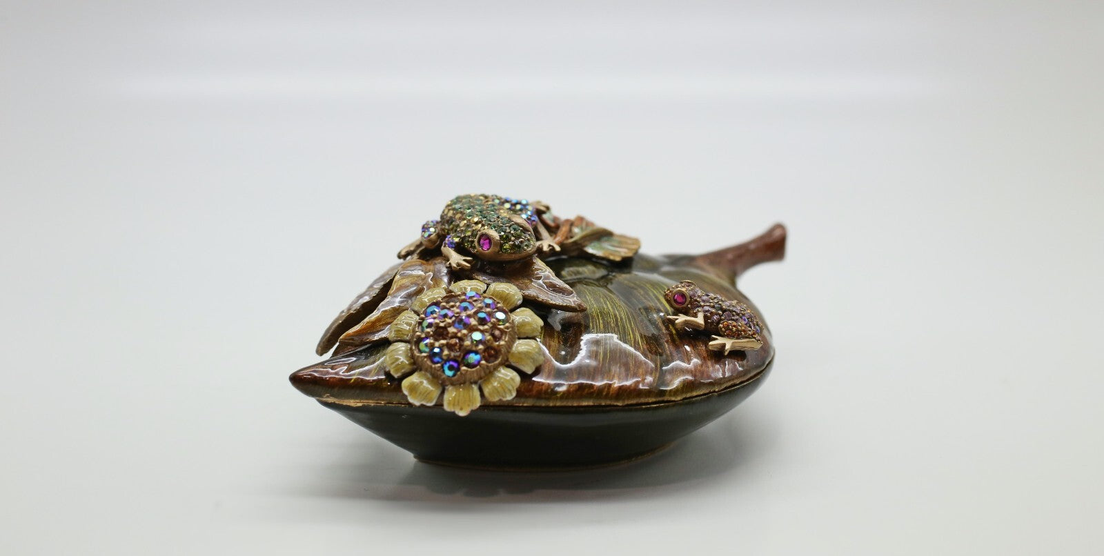 Jay Strongwater Bramble Collection Two Frogs on Leaf Trinket Box