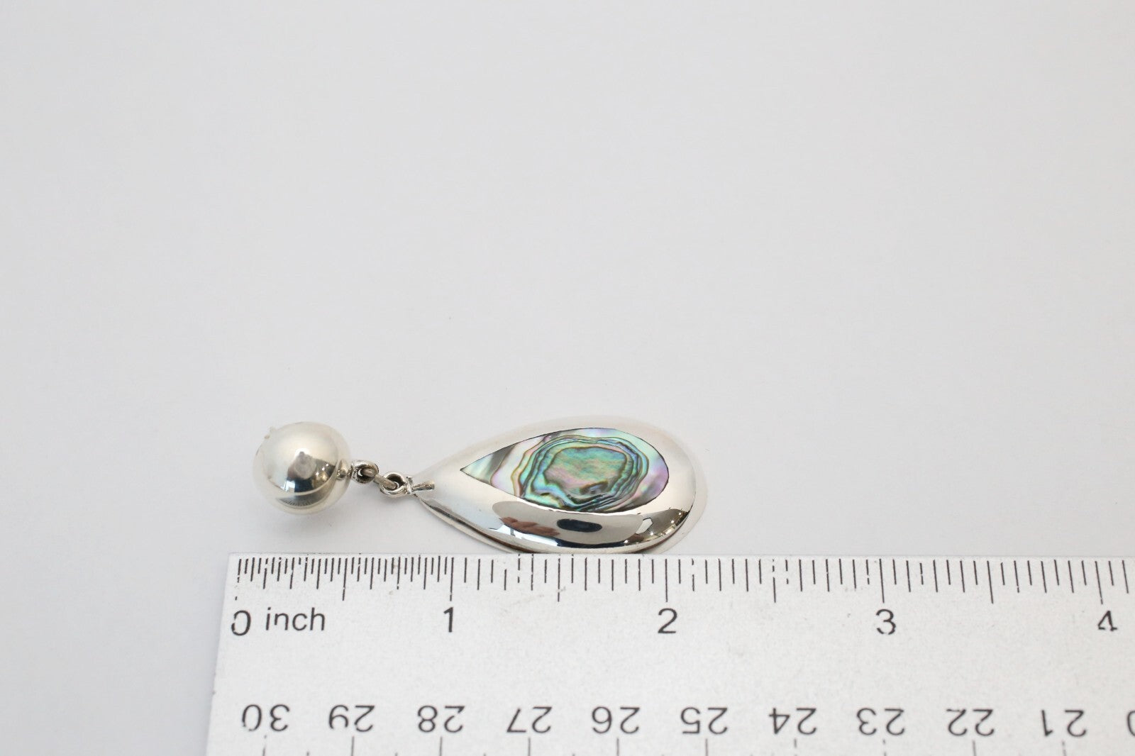 Mexico Sterling Silver Abalone Shell Dangle Earrings, 17.4g