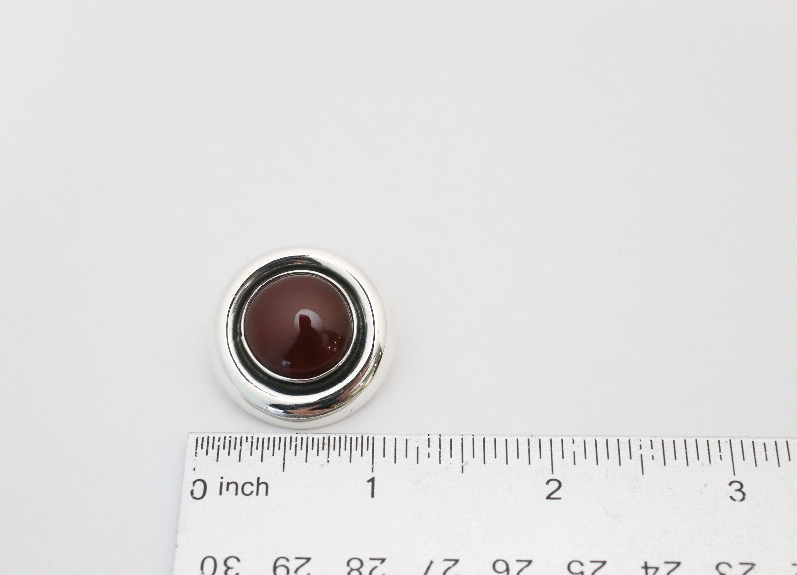 Mexico Sterling Silver Carnelian Round Clip-On Earrings, 22.0g
