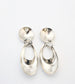 These striking sterling silver post earrings feature a sculptural open teardrop design suspended from polished circular tops, creating a bold, modernist silhouette with sleek, fluid lines.