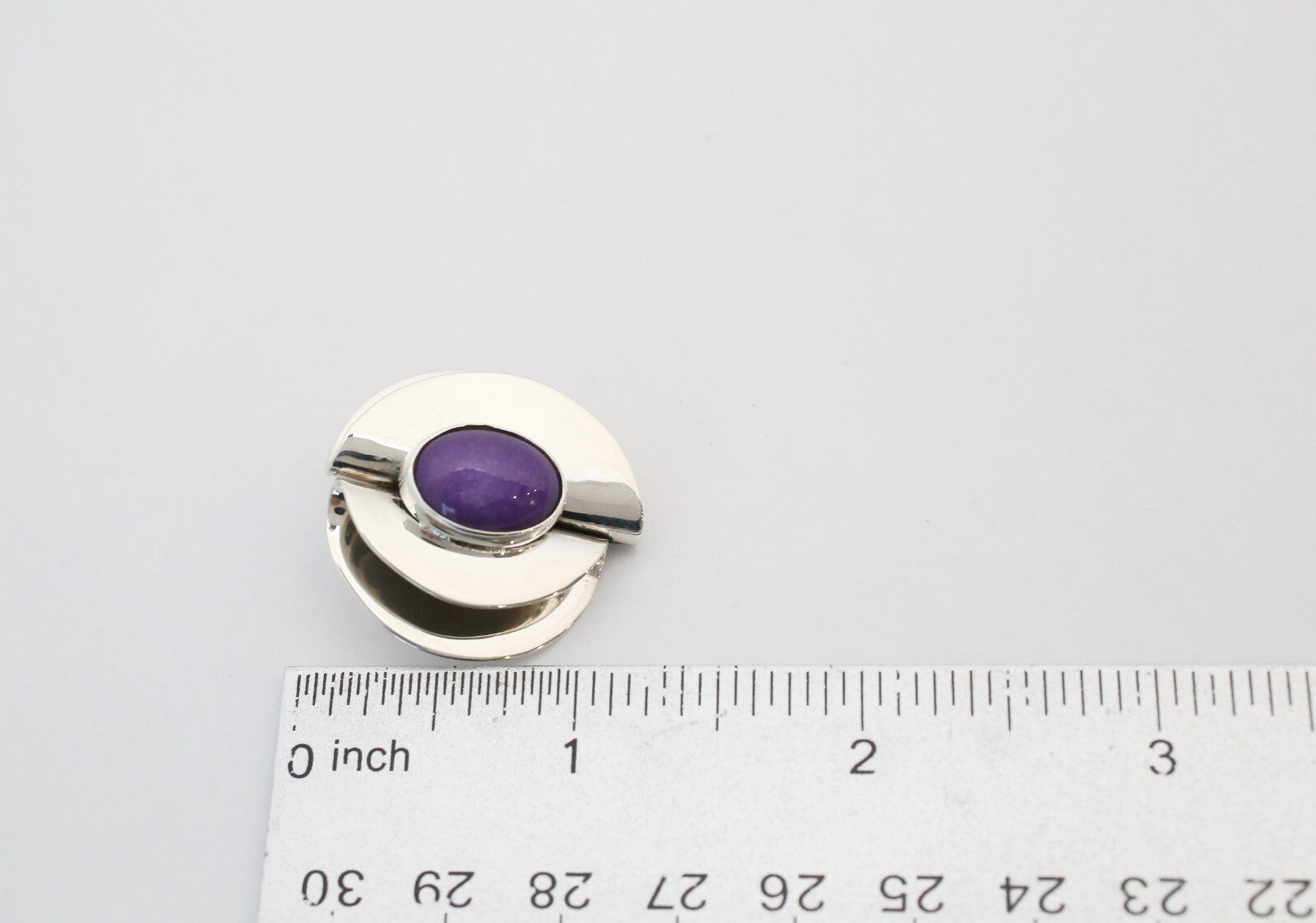 Mexico Sterling Silver Purple Sugilite Clip-On Earrings, 19.7g