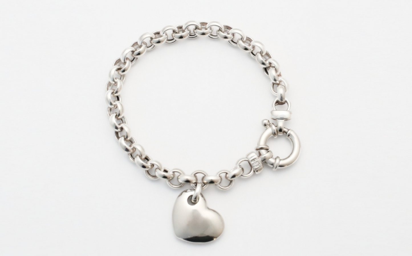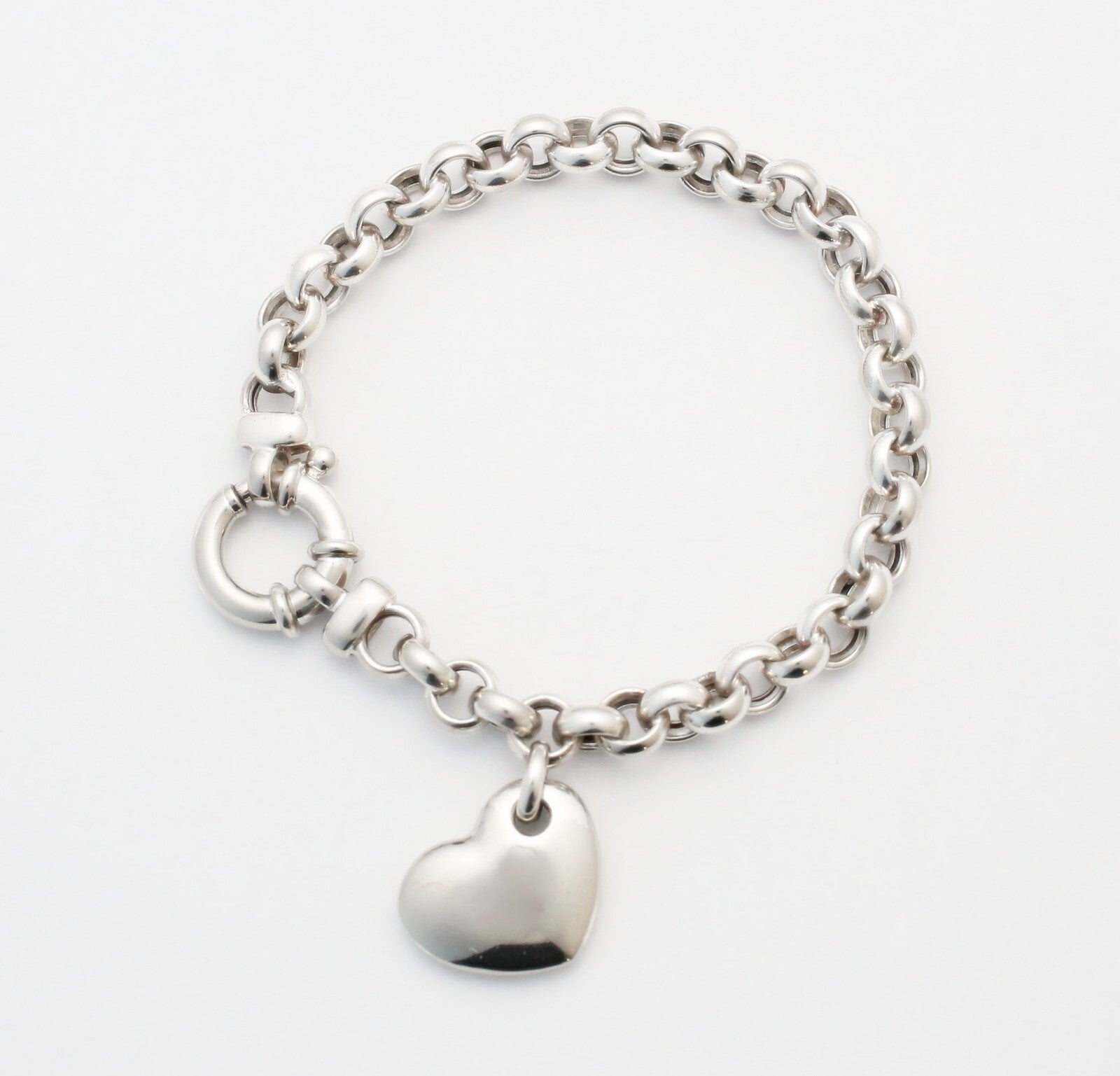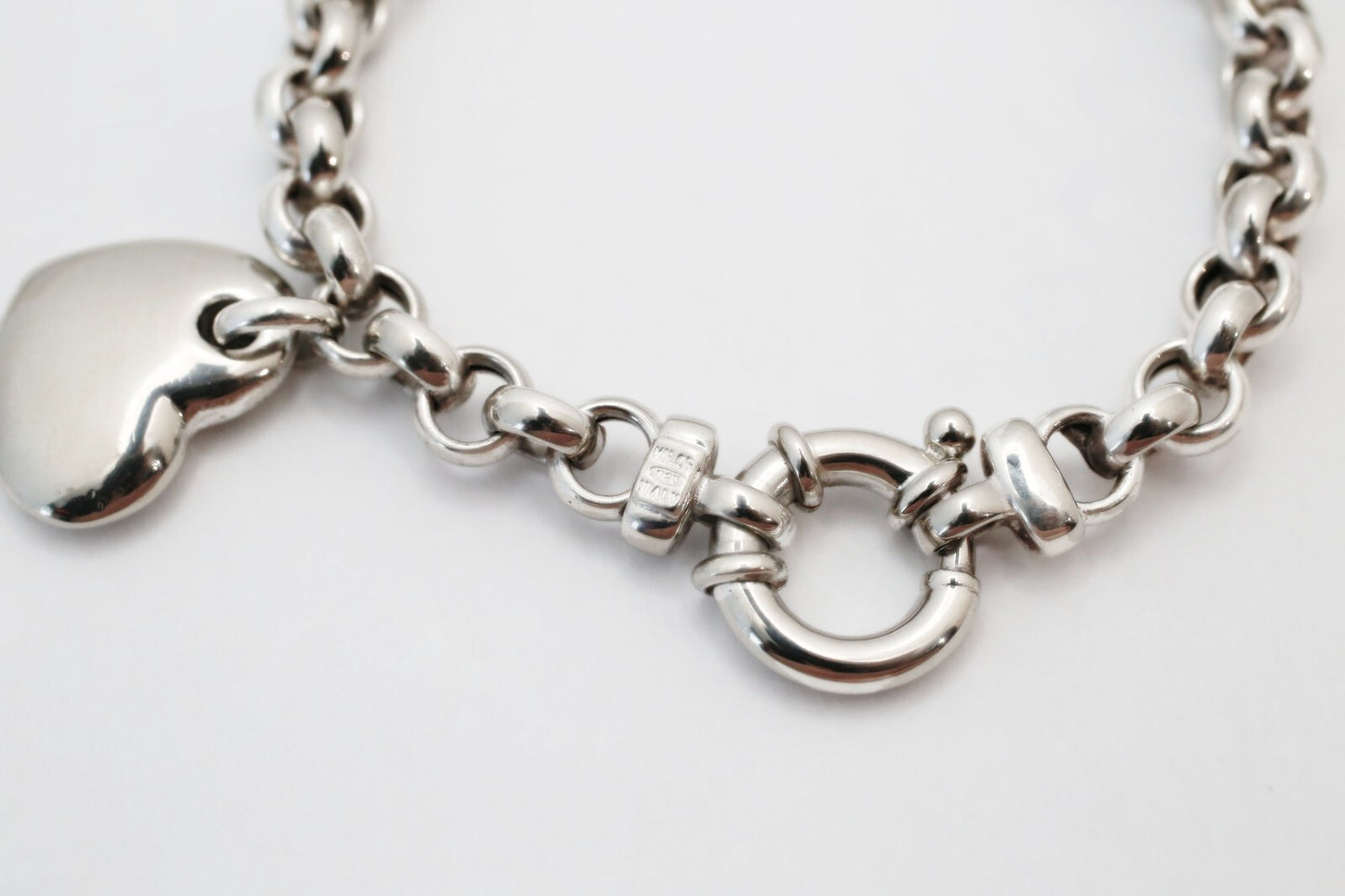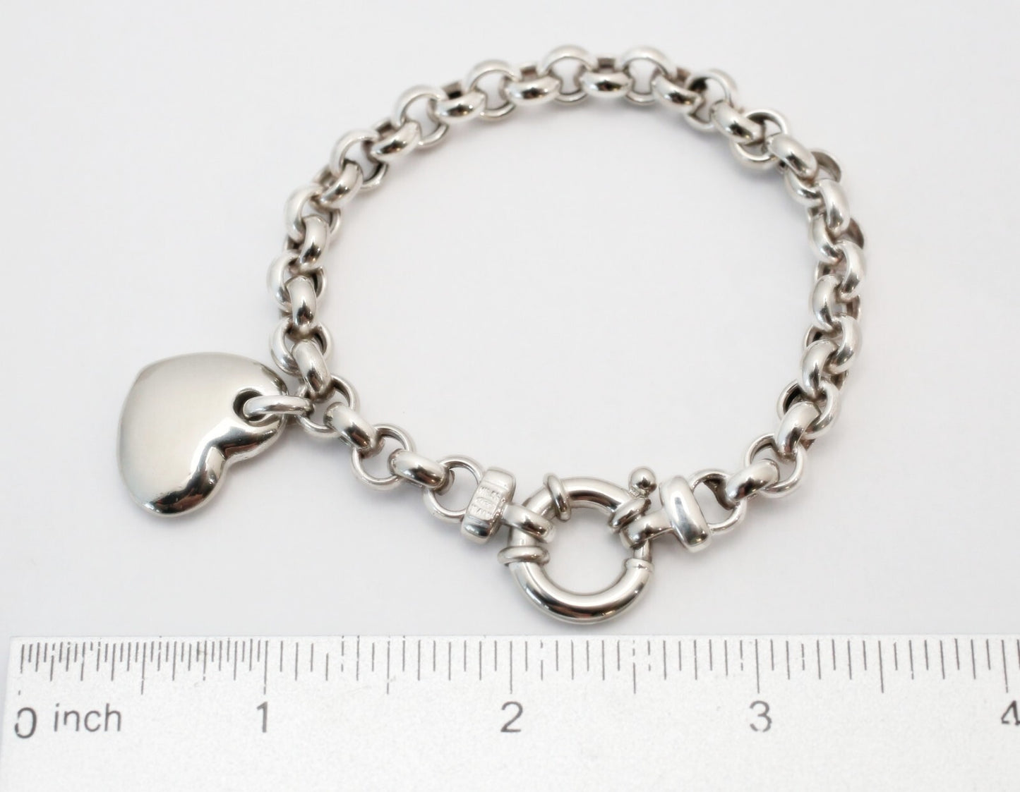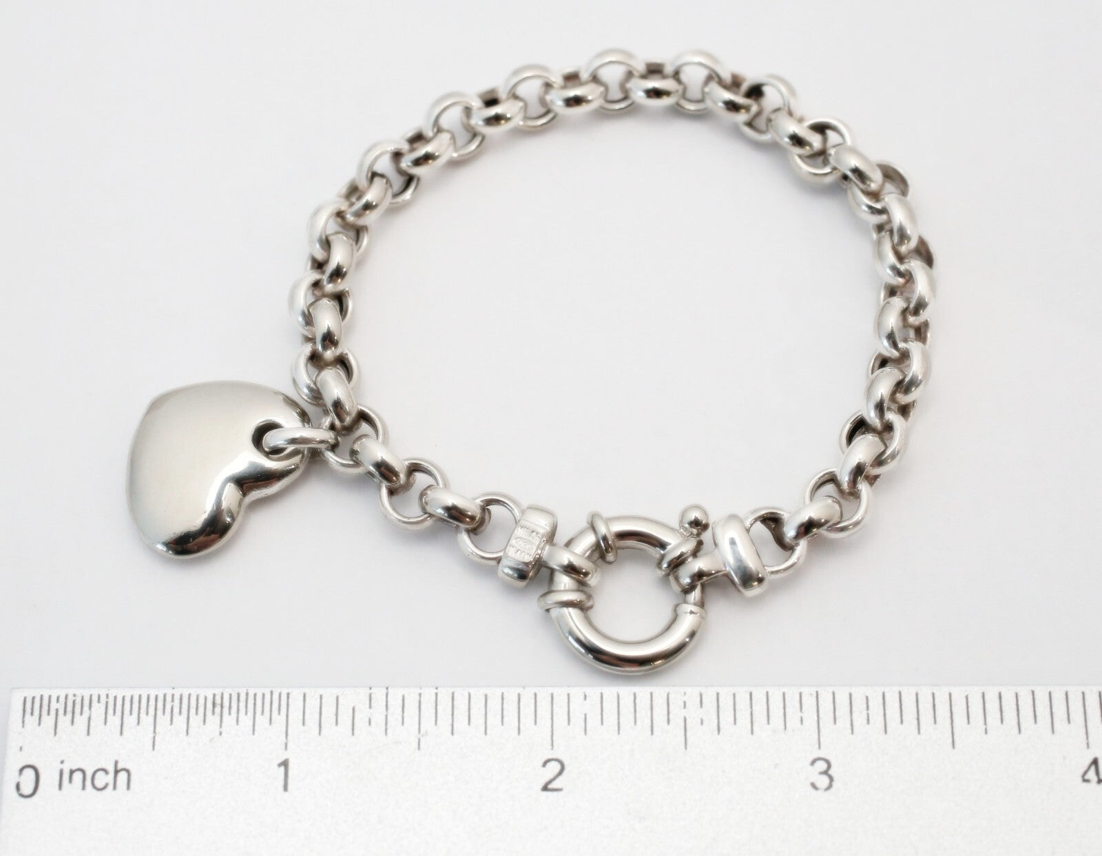 Milor Sterling Silver Puffed Heart Charm Rolo Link Bracelet, 7 inches - 25.0g
