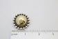 These bold Mexican sterling silver clip-on earrings feature a striking domed center of polished gold-tone, framed by a ring of twisted wire and bordered with a double row of raised silver beads. The dramatic contrast between the warm metallic centerpiece and cool sterling setting highlights traditional Mexican craftsmanship in a modern, eye-catching design.