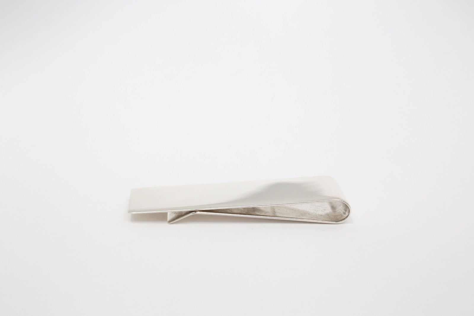 This sleek sterling silver money clip offers a clean, minimalist design with a polished mirror finish. Its simple rectangular form and firm tension make it both practical and elegant, ideal for securely holding bills or cards without the bulk of a wallet. A timeless accessory that blends understated style with refined function.