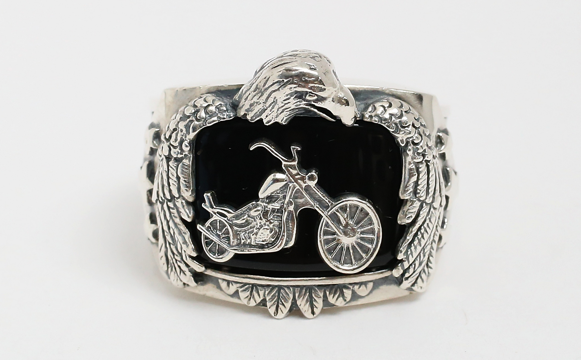 Sterling Silver Motorcycle Eagle Ring, Size 8 - 21.3g