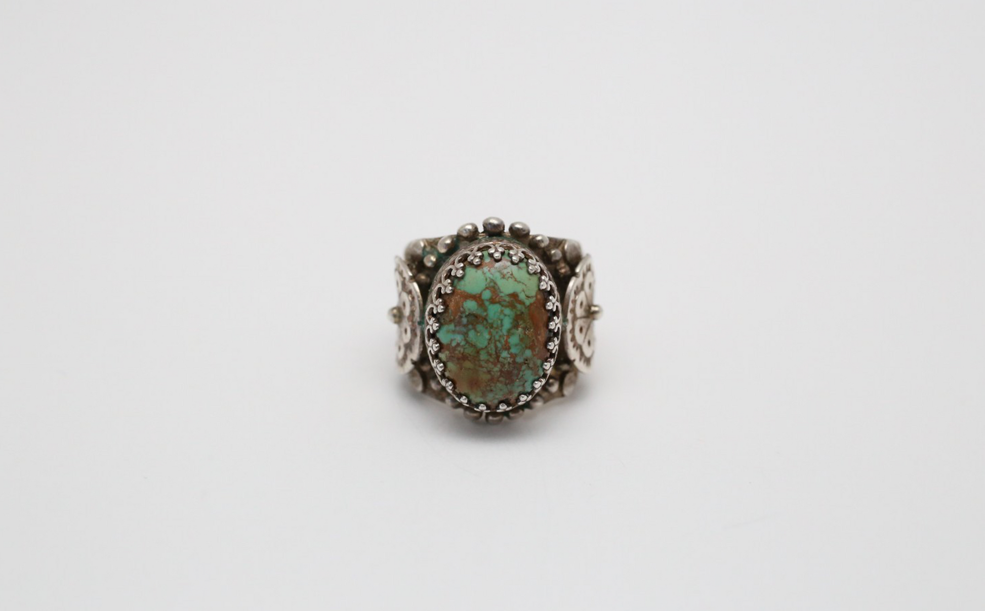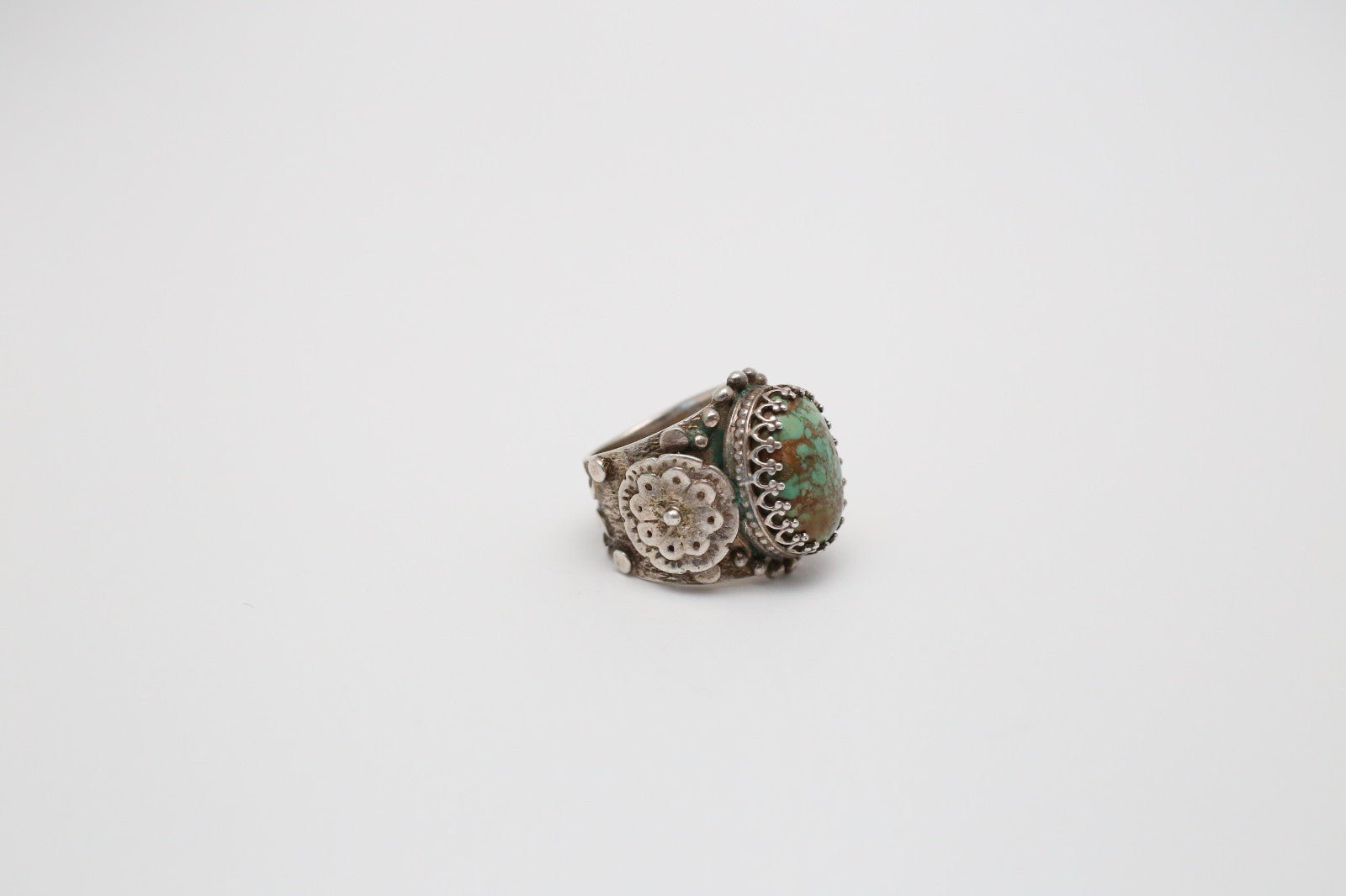 Sterling Silver Ornate Green Turquoise Ring, Size 5 - 14.4g
