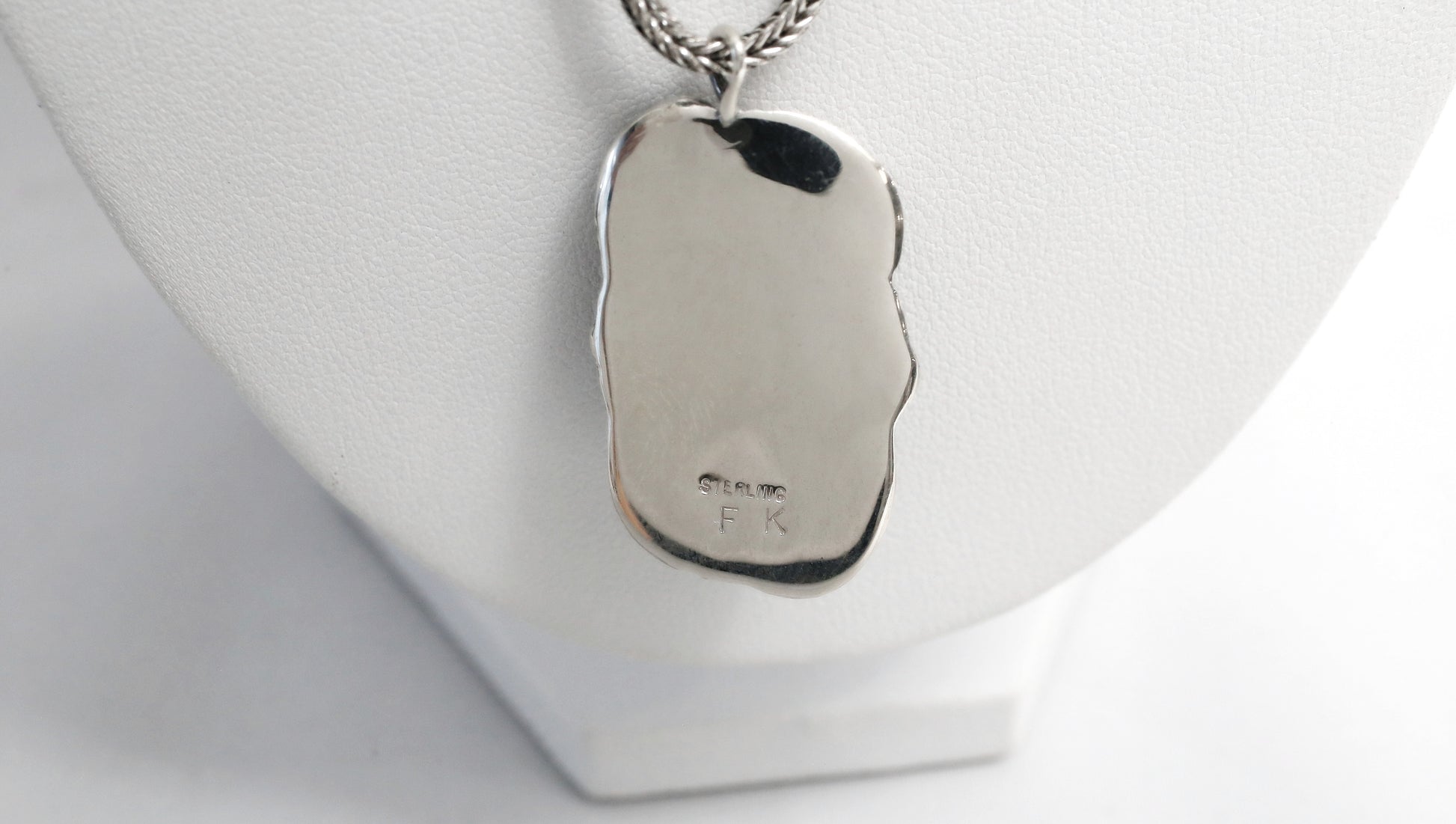 - Measurements: Chain thickness 2.0mm, Pendant size 38.5mm x 21.6mm, Weighs 15.7 grams