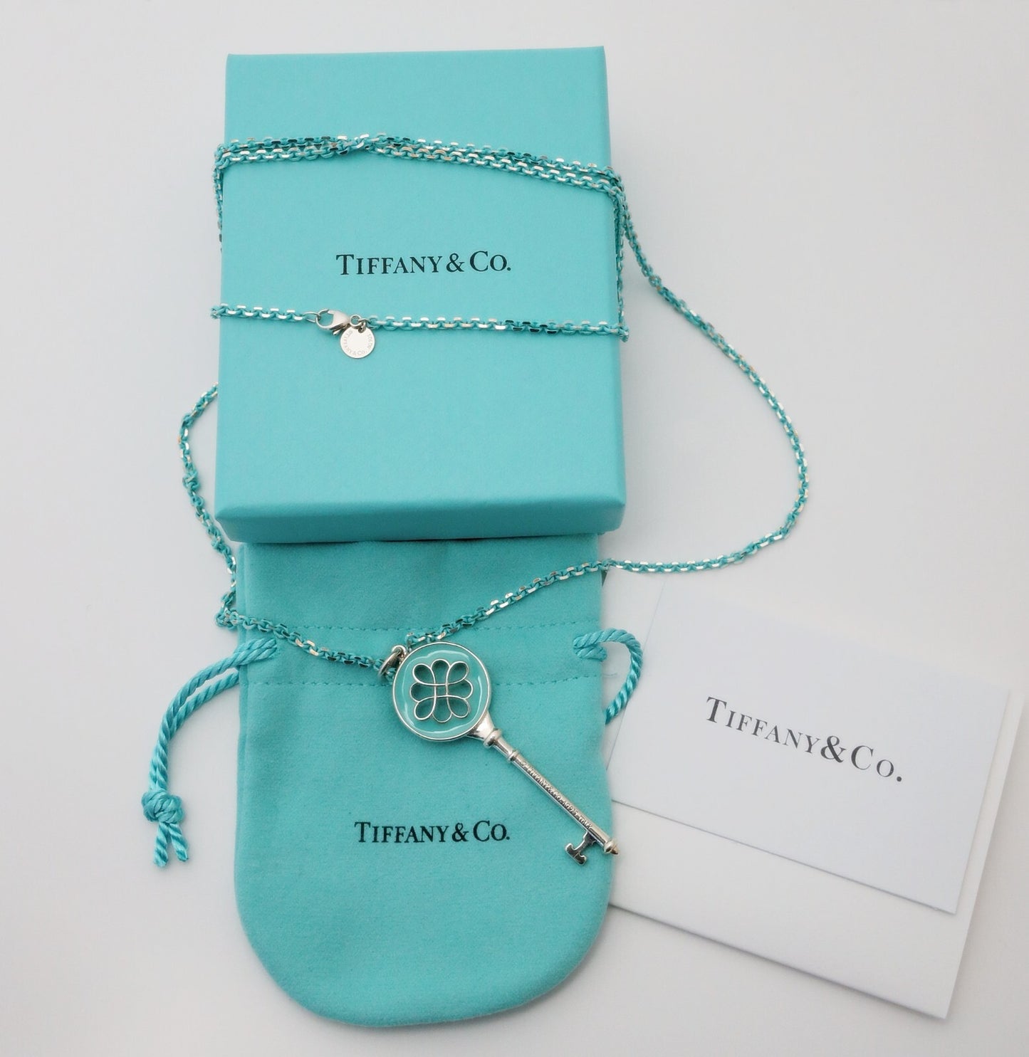 Tiffany & Co Sterling Silver Blue Enamel Key Pendant & Chain, 30 inches - 18.5g