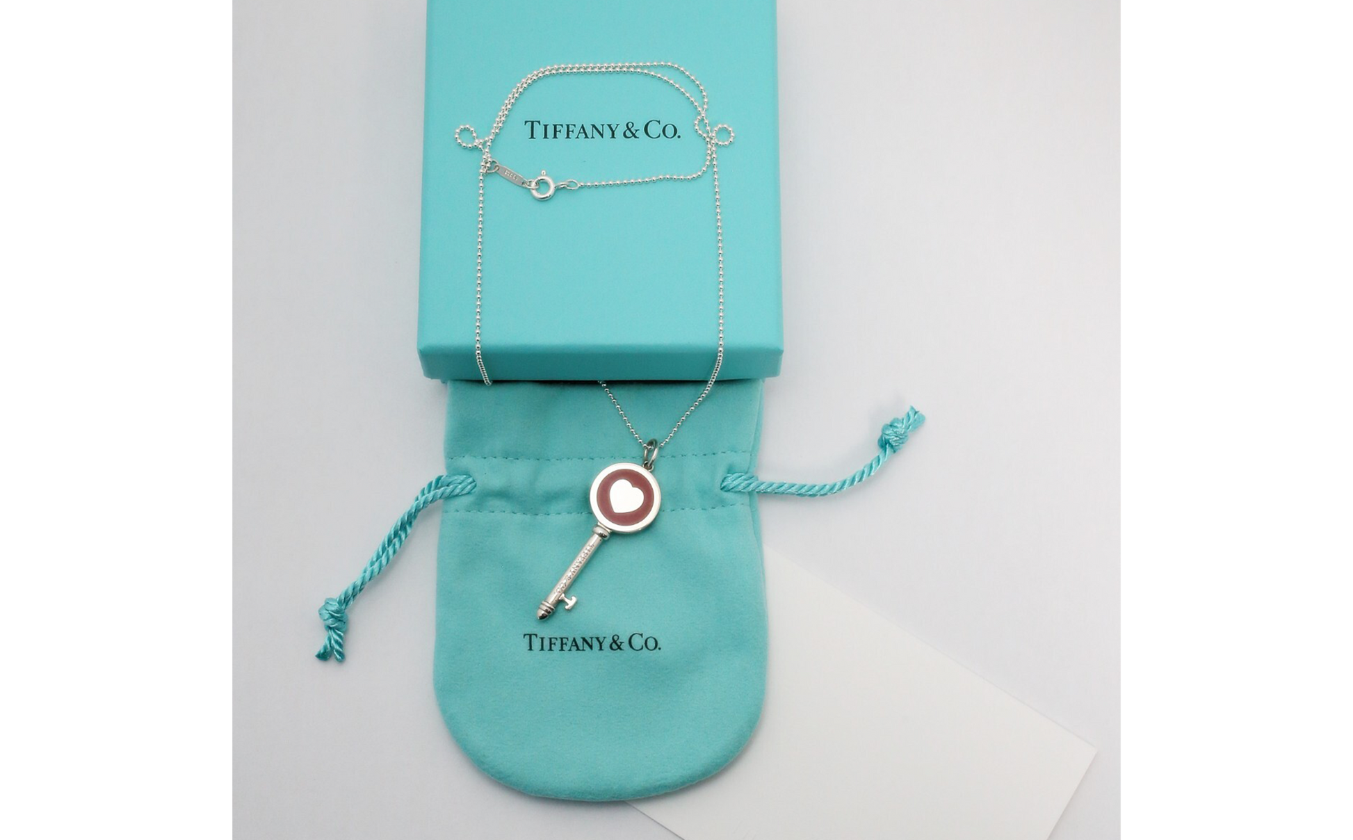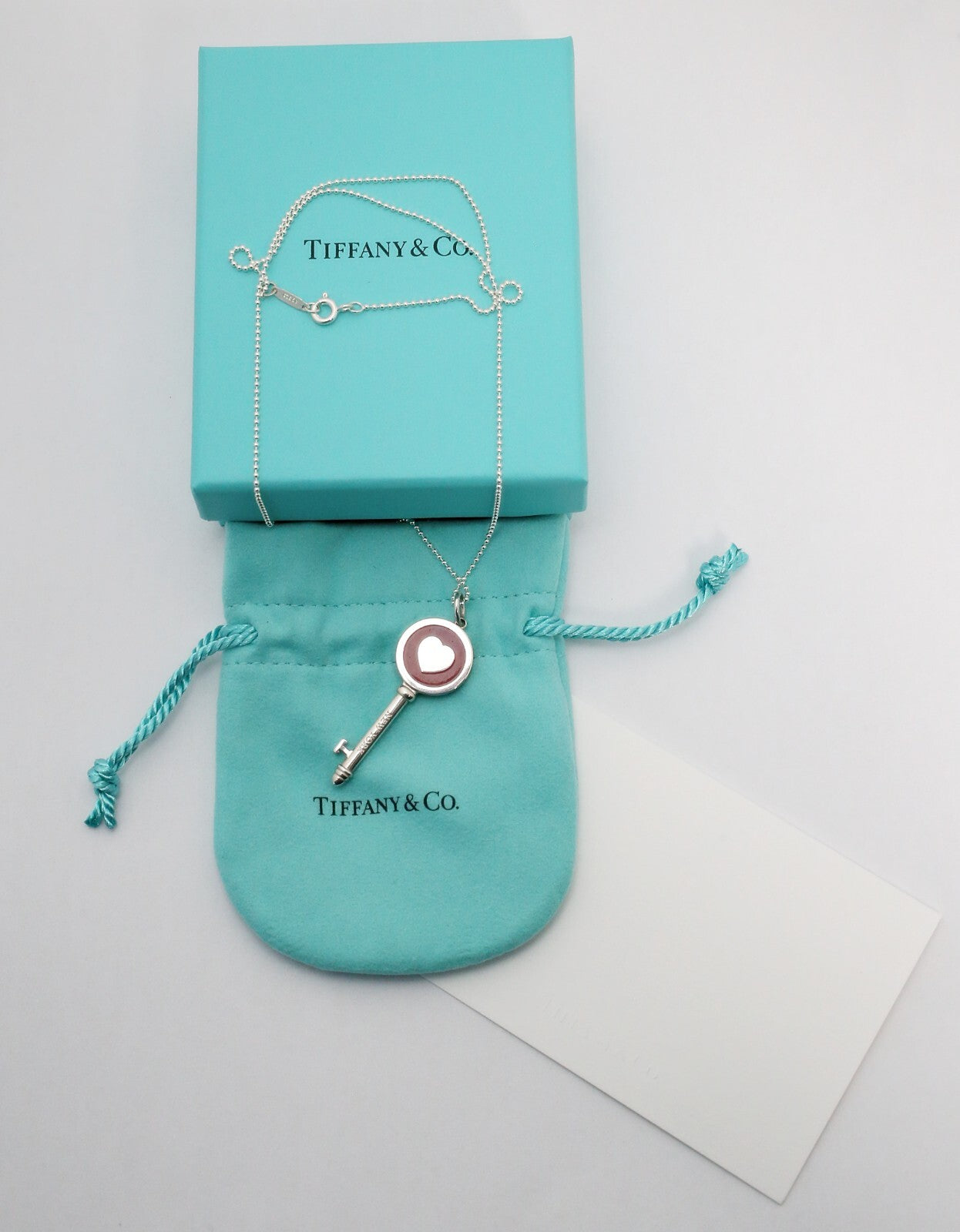 Tiffany & Co Sterling Silver Red Enamel Heart Key Pendant Necklace, 18" - 7.4g