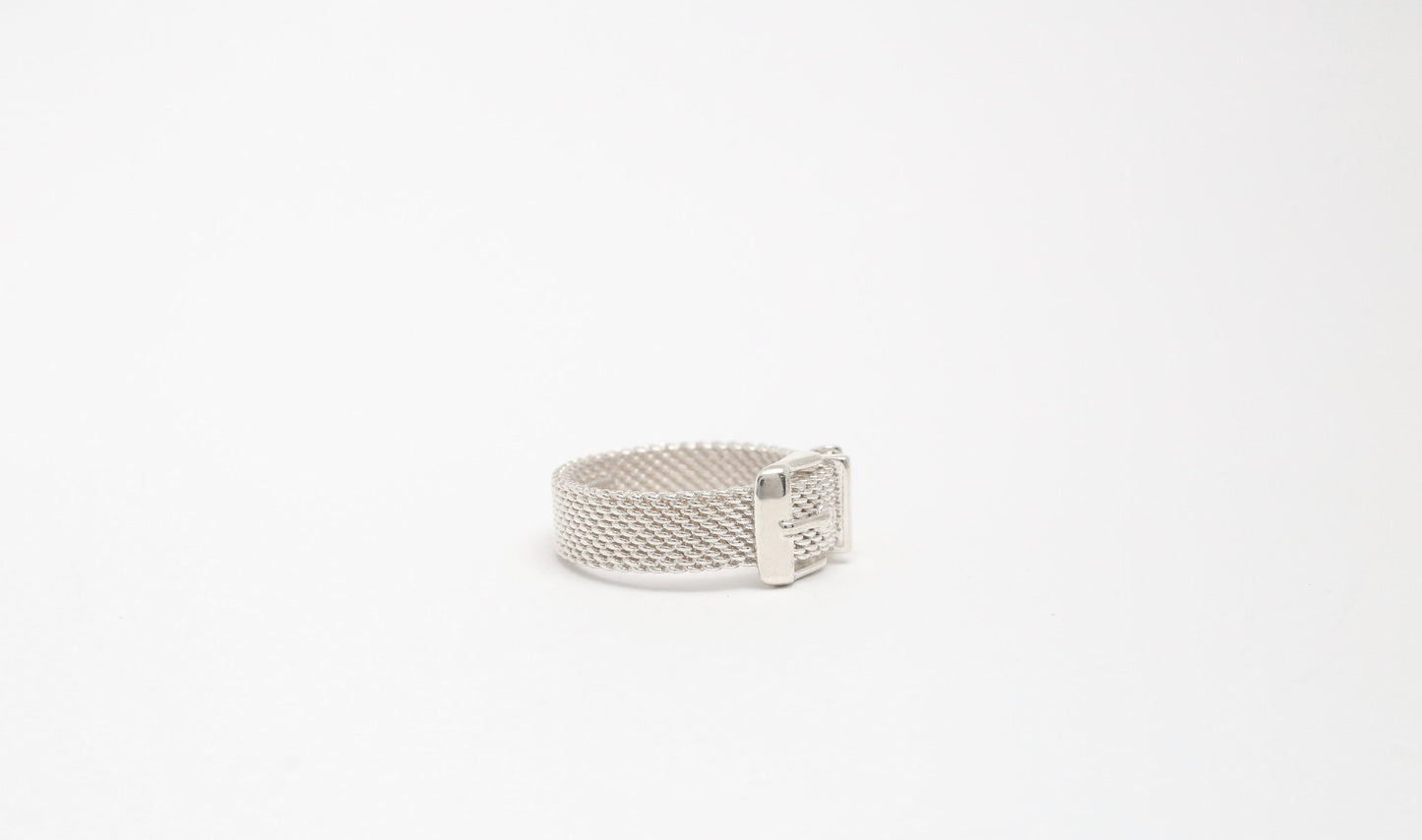 Tiffany & Co Sterling Silver Somerset Mesh Buckle Ring, Size 6.5 - 5.0g