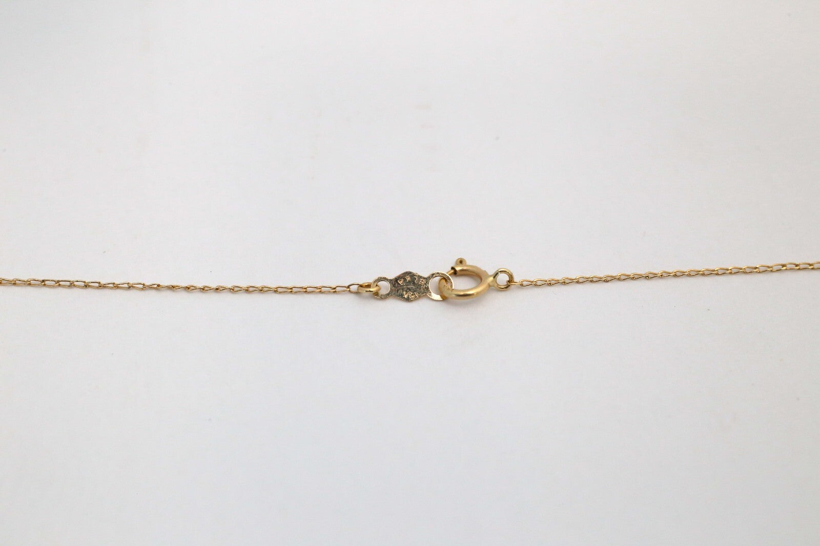 - Measurements: Chain thickness 0.5mm, Pendant size 12.5mm x 18.0mm, Weighs 1.4 grams
