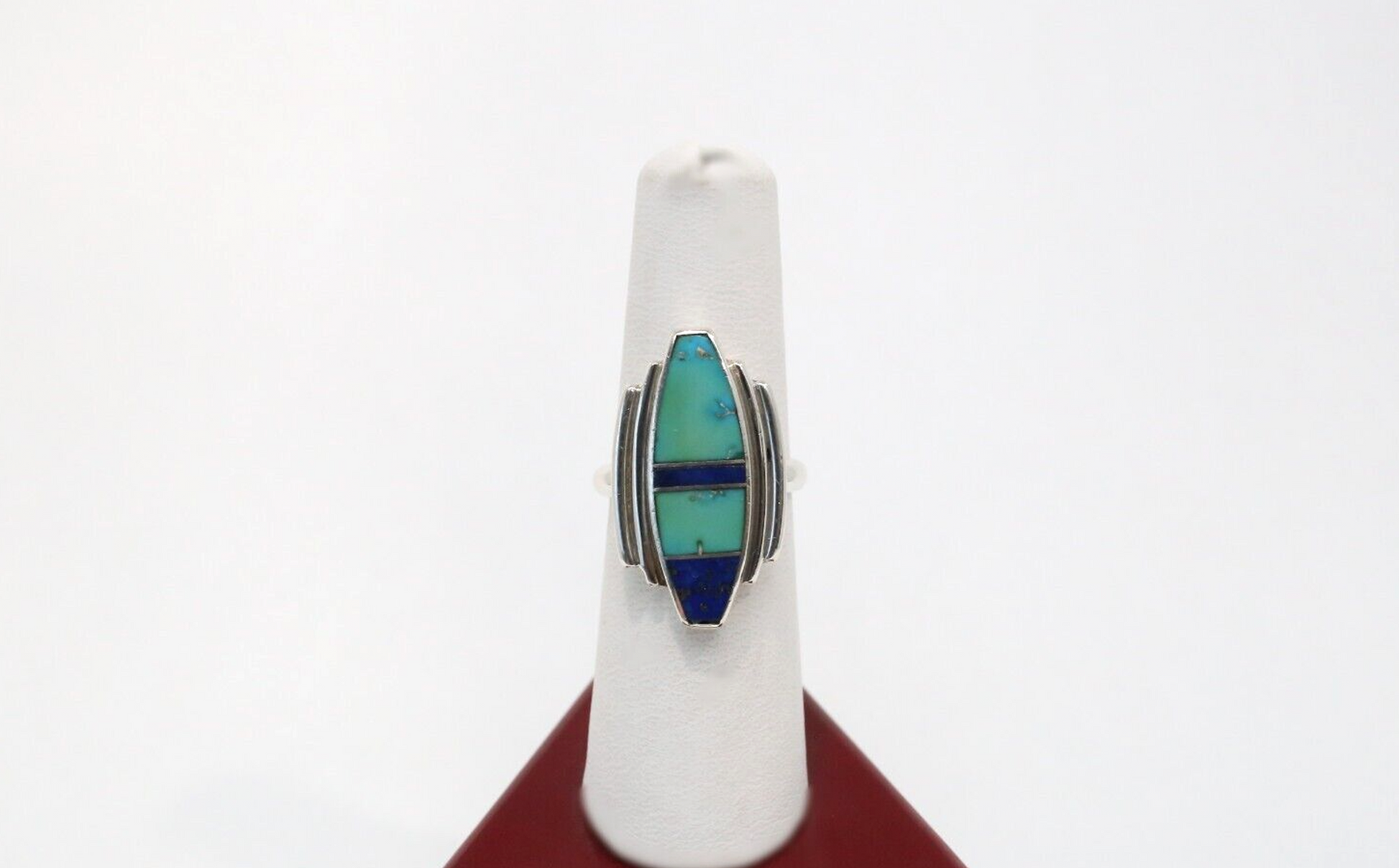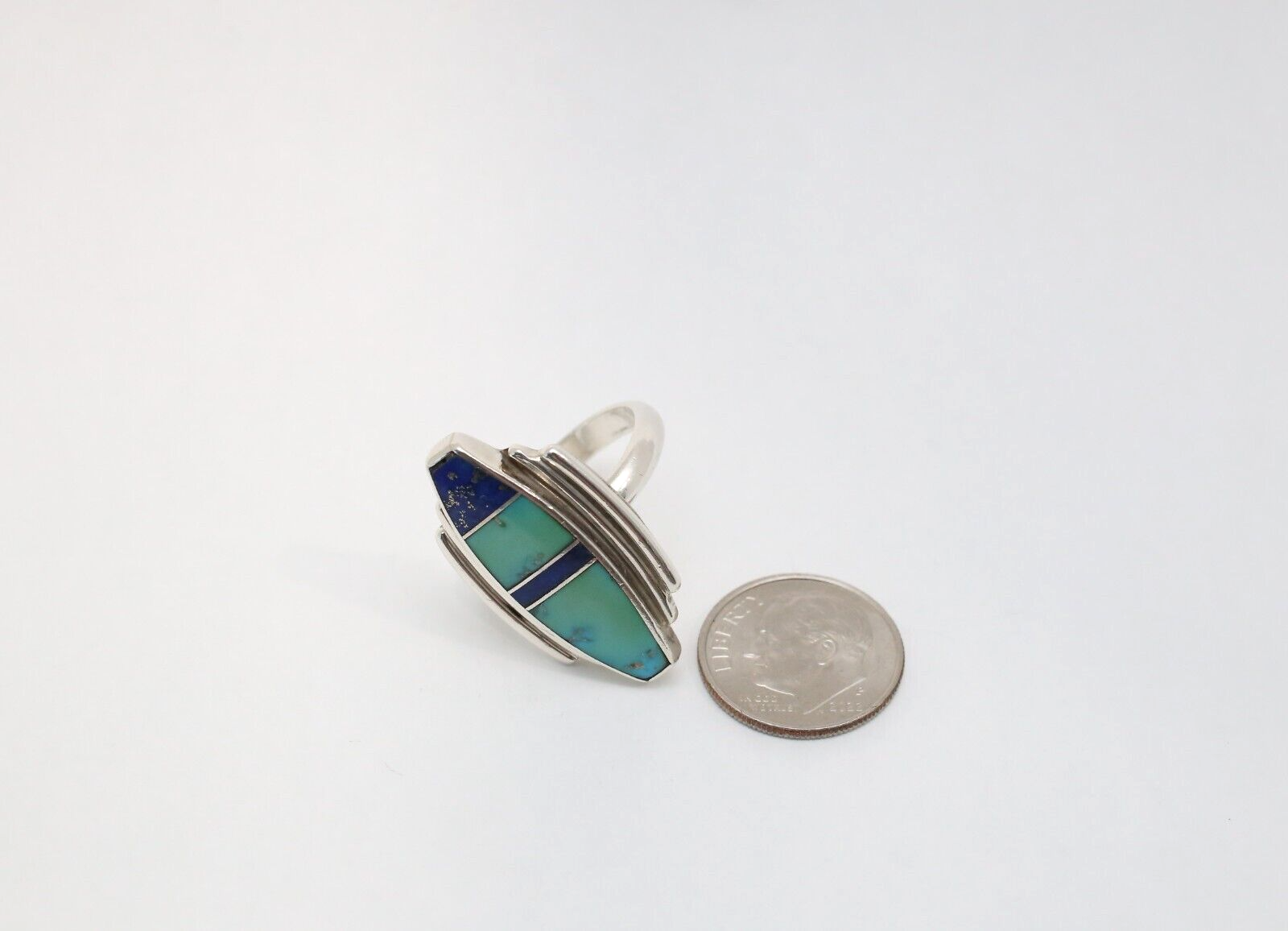 Vintage DD Sterling Silver Inlaid Ring, Size 7 - 7.1g