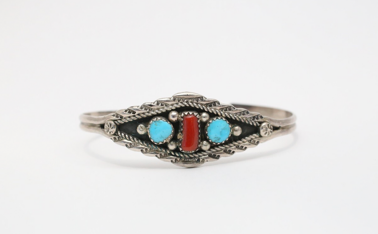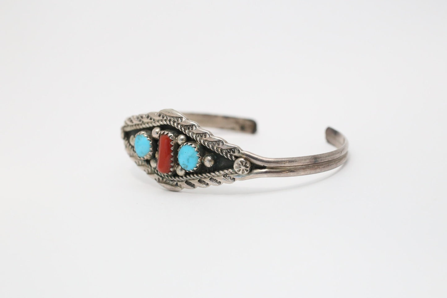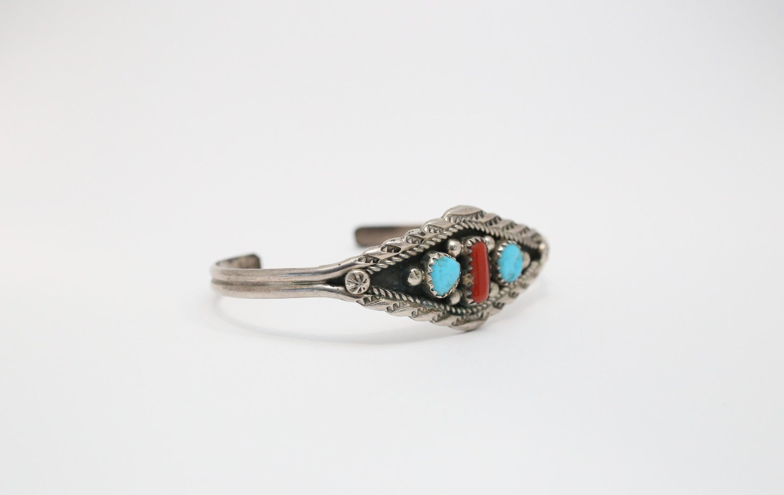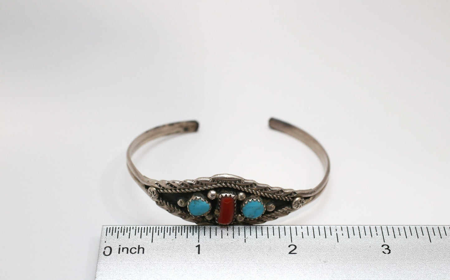 Vintage Navajo Sterling Silver Turquoise Cuff Bracelet, Size 6 - 11.1g