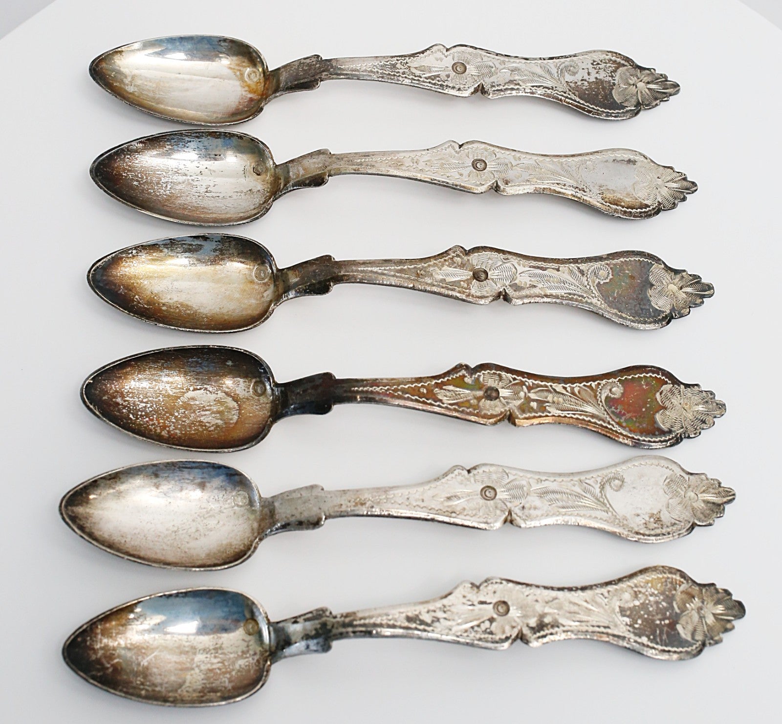Vintage Ornate Solid Silver Spoons, Set of 6 - 180.0g