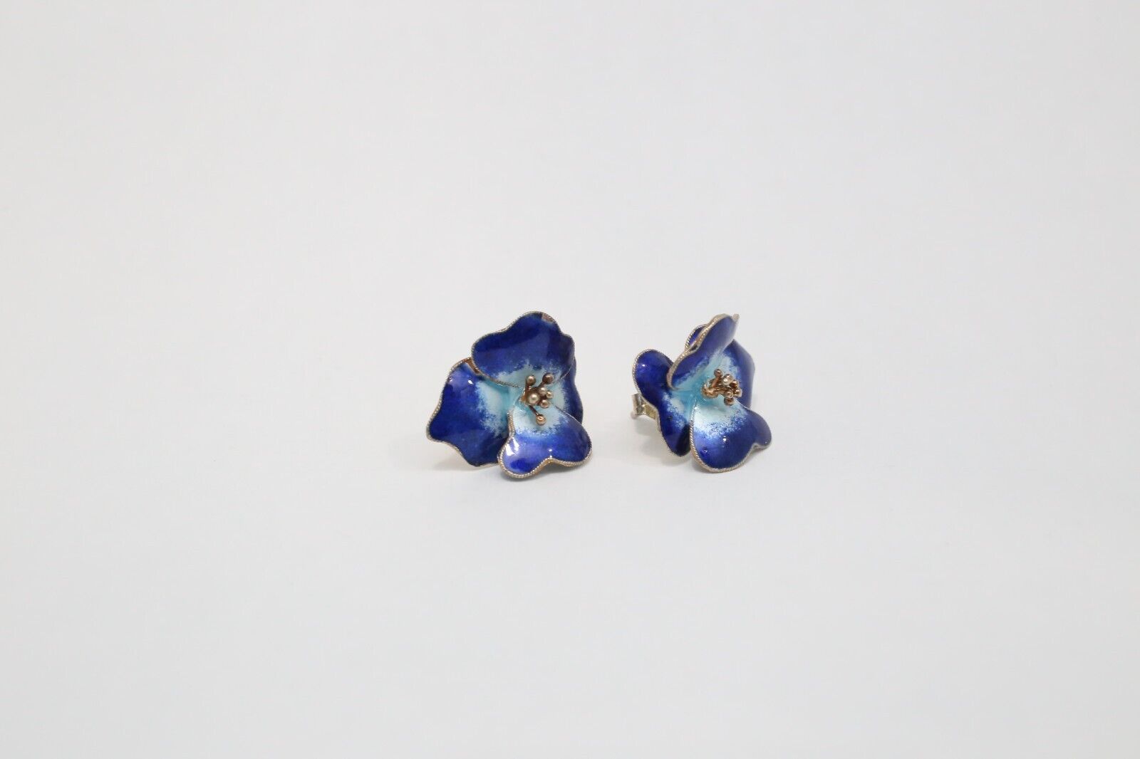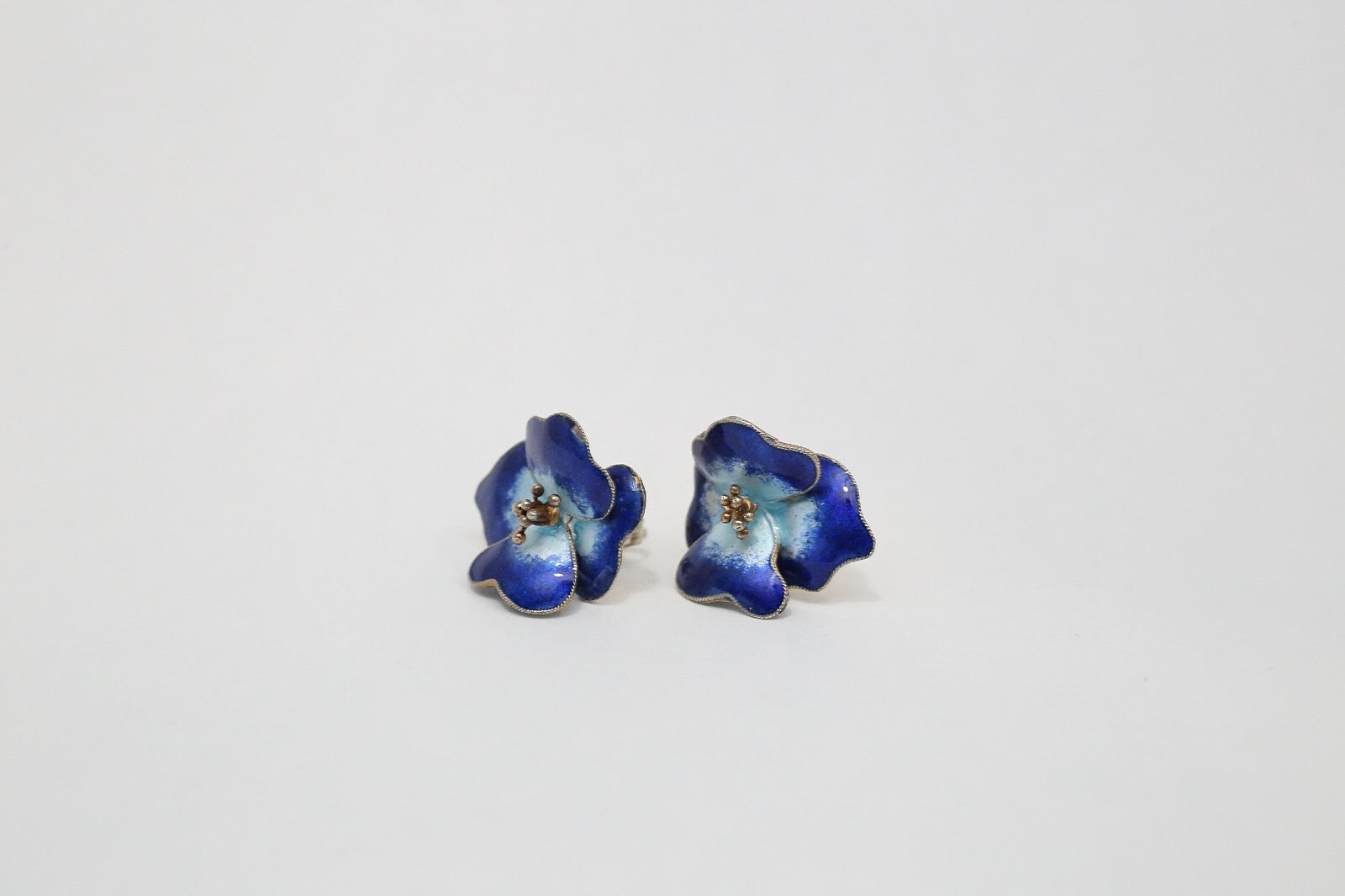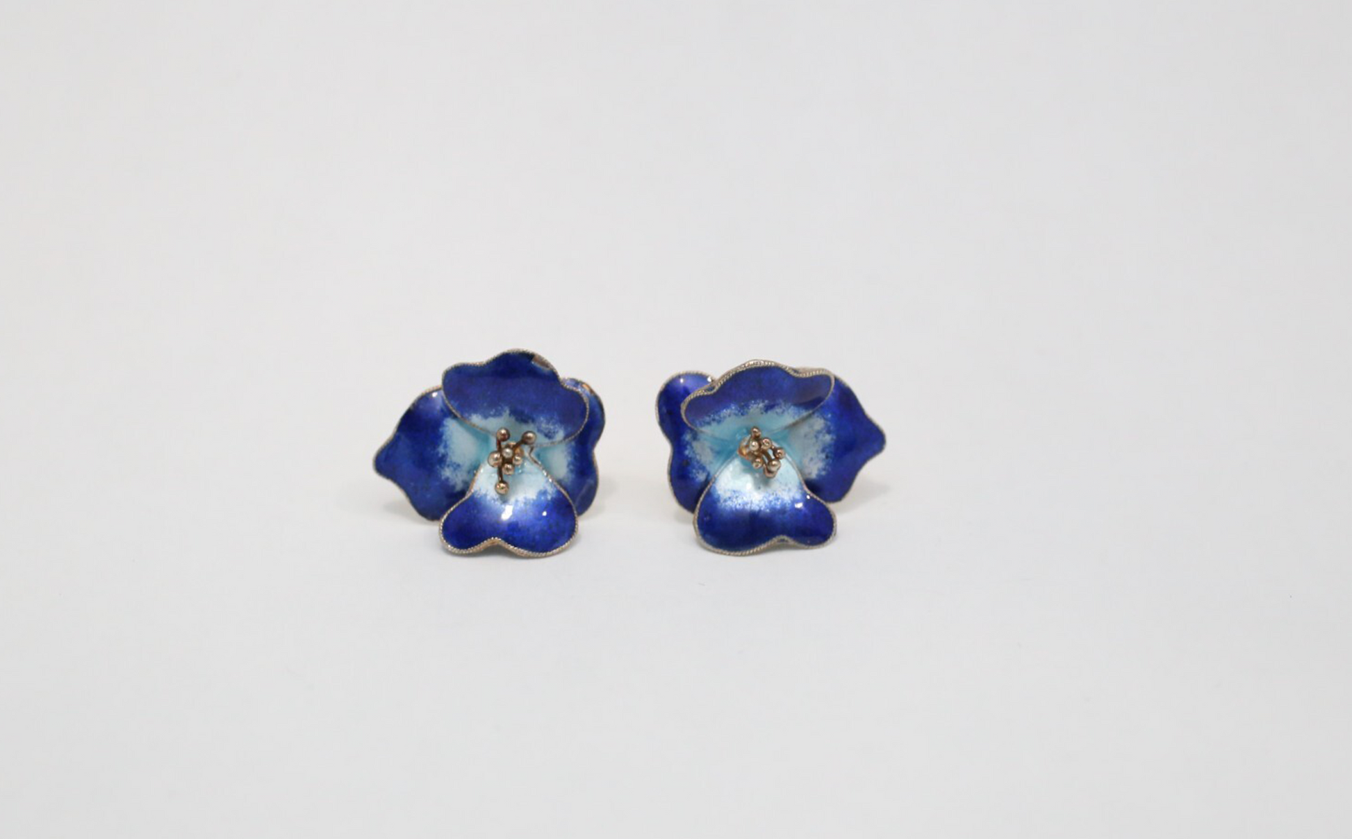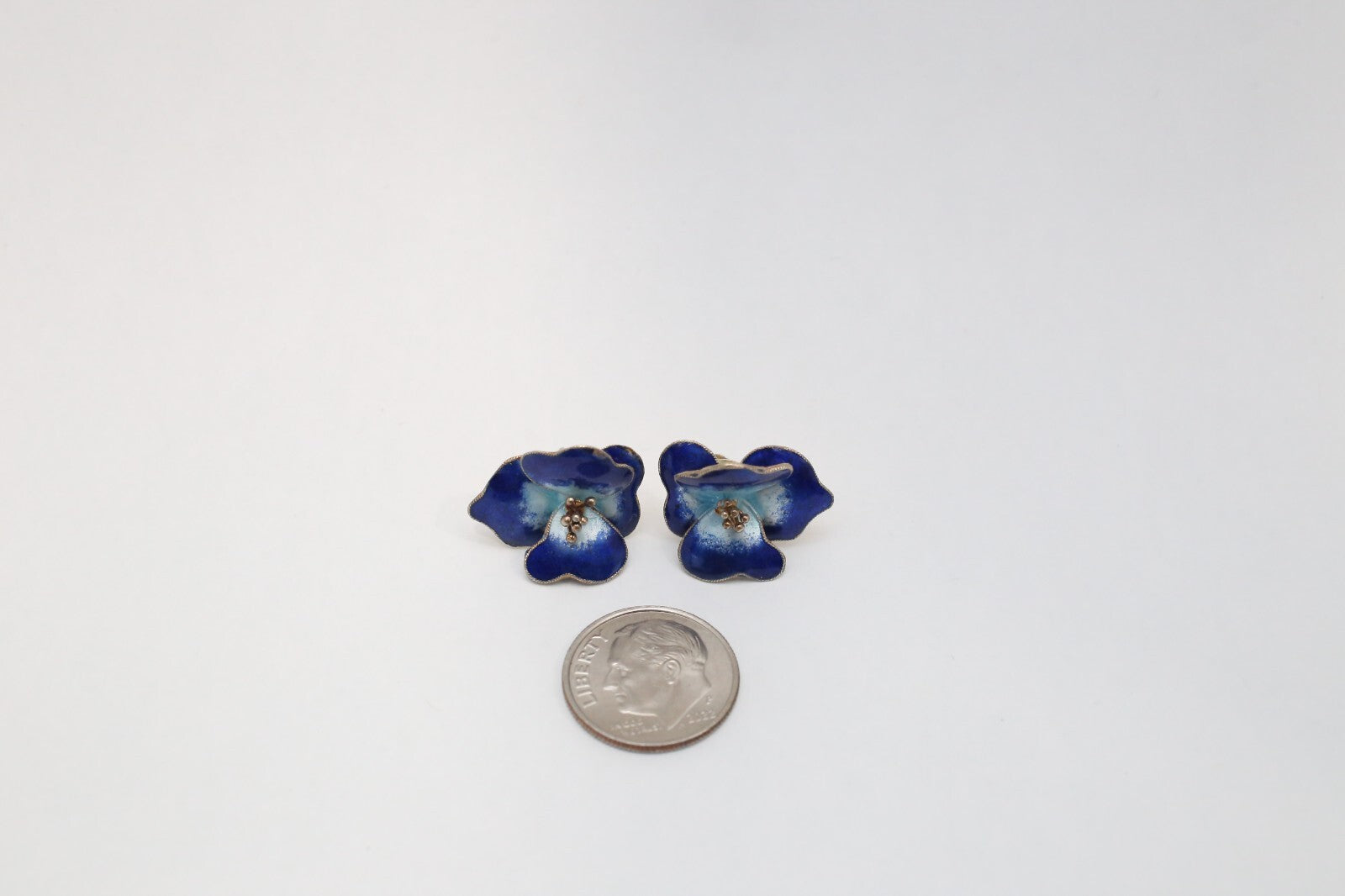 Vintage Sterling Silver Flower Enamel Earrings, 4.0g
