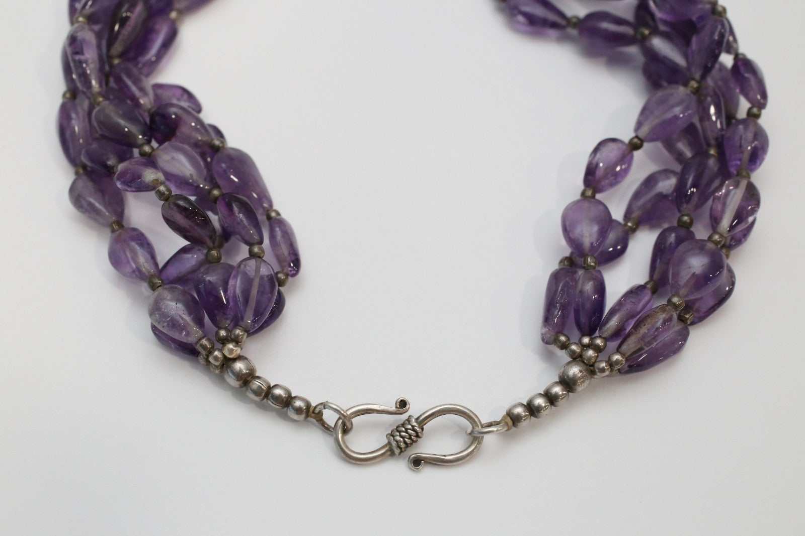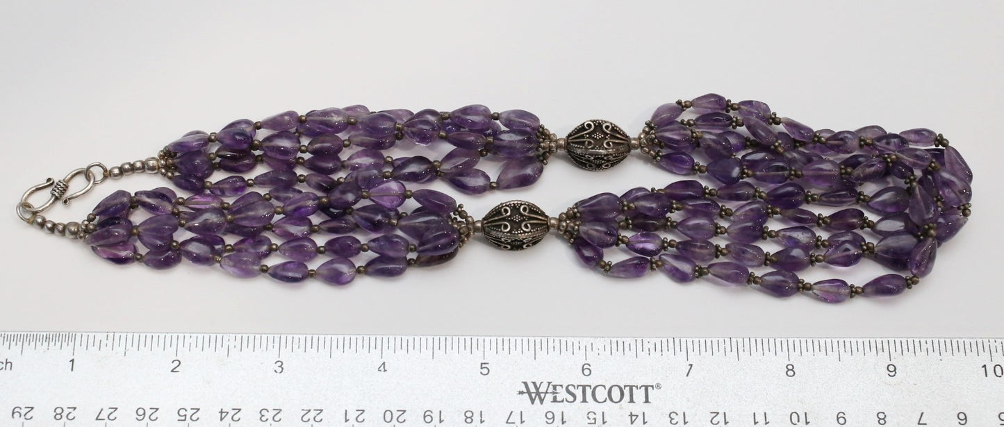 Vintage Sterling Silver Multi-Strand Amethyst Necklace, 20 inches - 96.4g