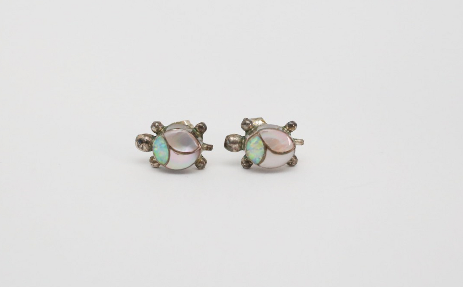 Vintage Sterling Silver Opal & Mother of Pearl Turtle Stud Earrings, 1.8g