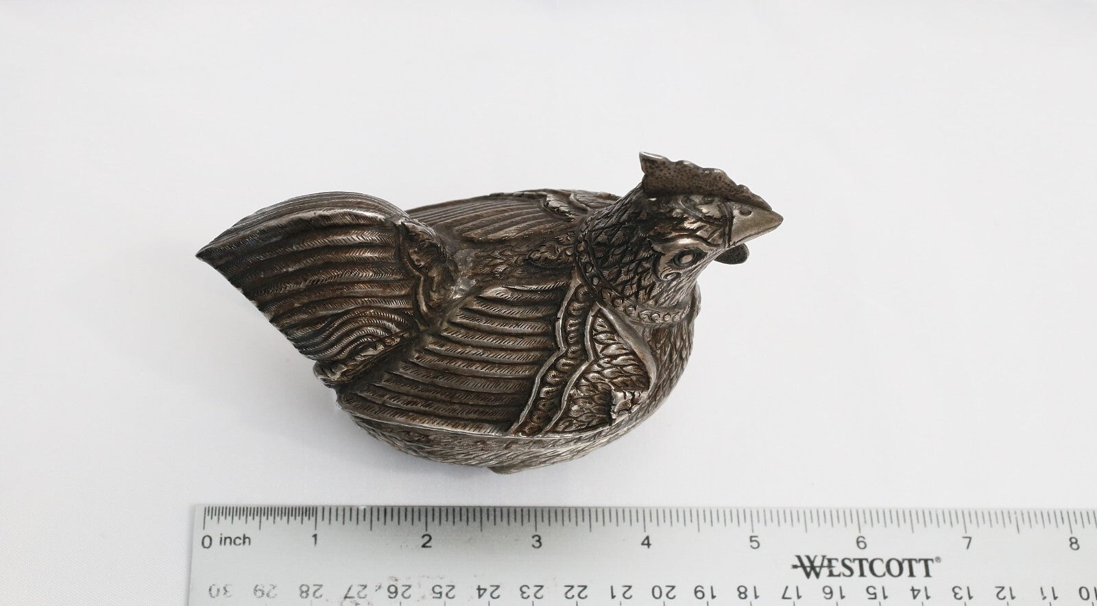 Vintage Sterling Silver Rooster Trinket Box, 119.5g