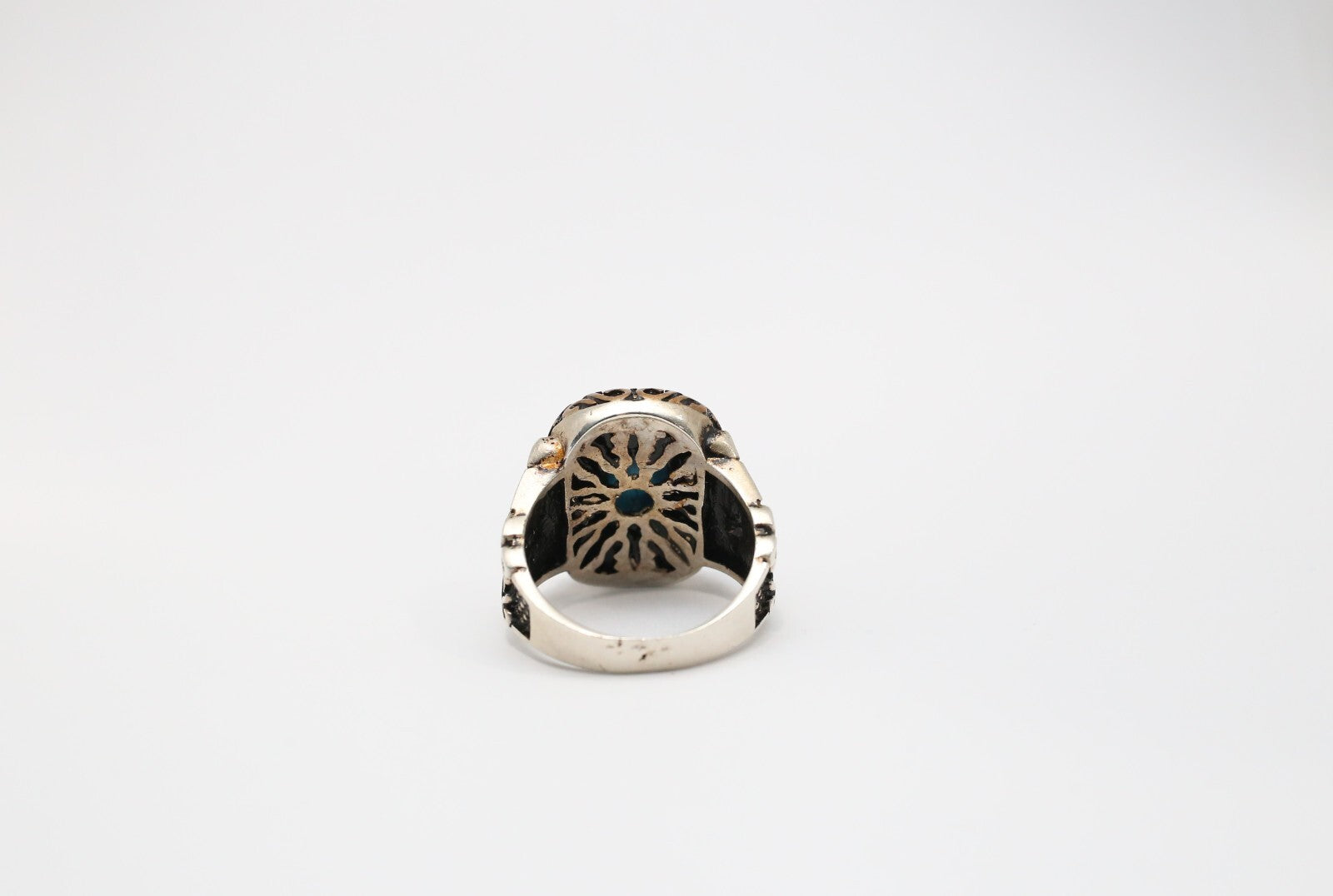Vintage Sterling Silver Turquoise Ring, Size 11.5 - 15.5g